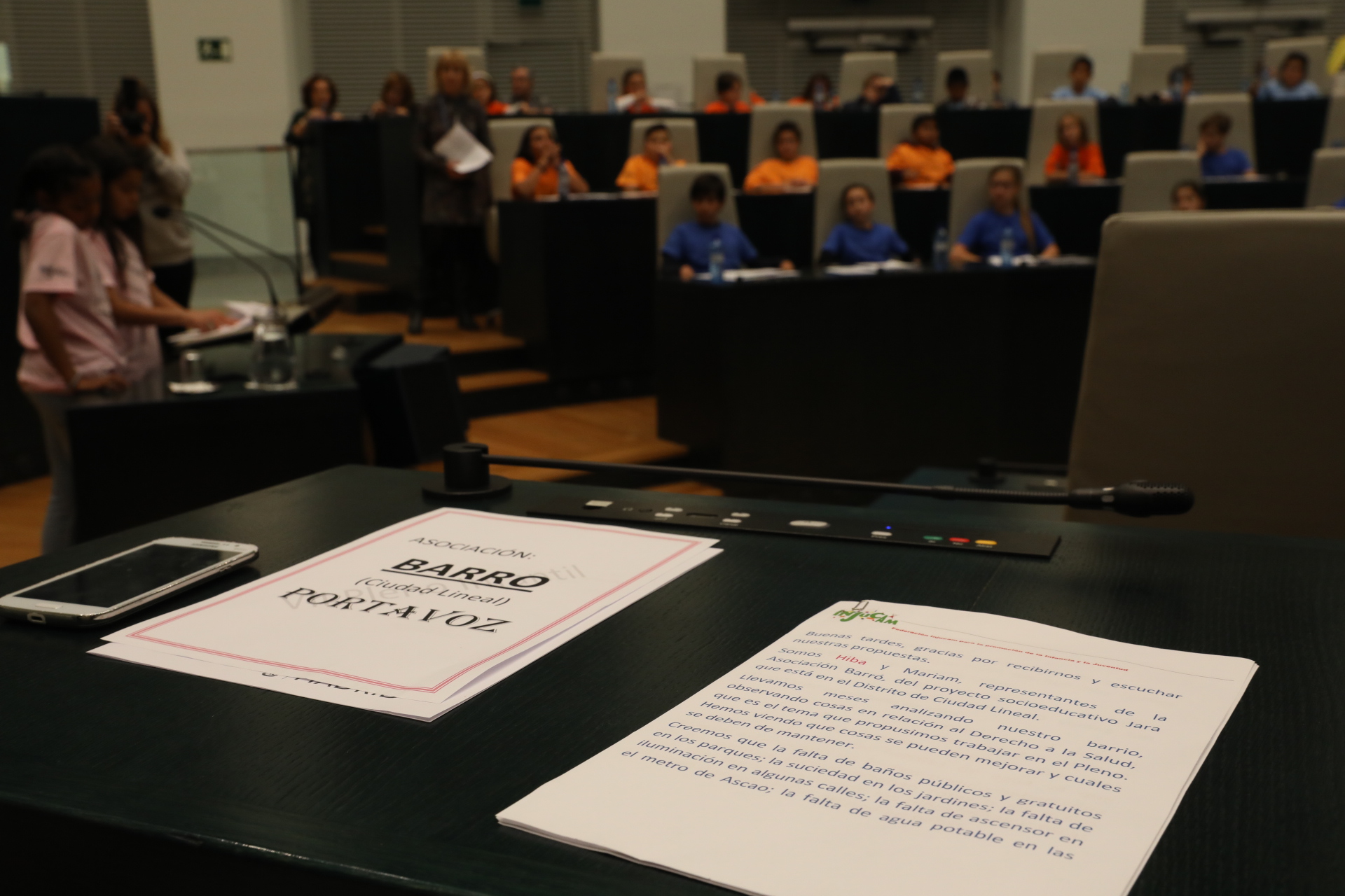En el Pleno han participado niños y niñas de ocho asociaciones vinculadas a la Federación de Asociaciones para la promoción de la infancia y la juventud, INJUCAM. Las ocho asociaciones que han participado han sido La Torre de Hortaleza del distrito de Hortaleza, Caminar del distrito de Moratalaz, MASI del distrito de Latina, ATZ del distrito de Ciudad Lineal, Barró Jara también de Ciudad Lineal, Alacrán del distrito de Hortaleza, Jaire del distrito de Chamartín y Valdeperales del distrito de Fuencarral-El Pardo.