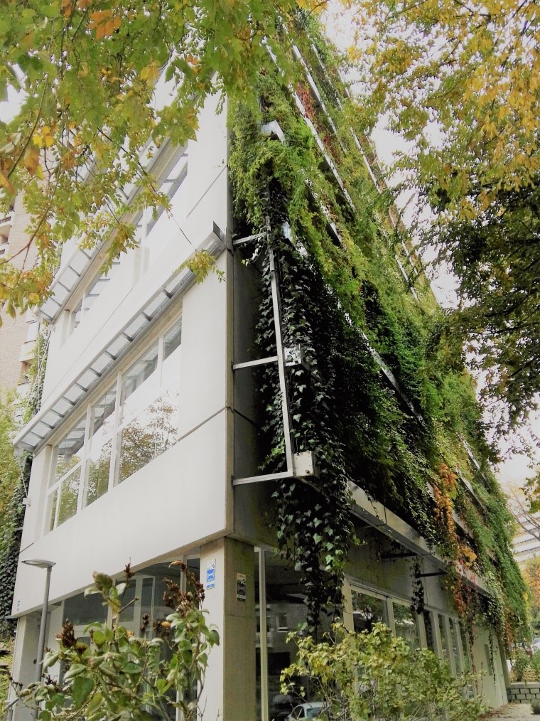 - El edificio ha sido construido bajo criterios de sostenibilidad y eficiencia energética, a base de cubierta de doble capa y triple fachada tipo sándwich con aislamientos y recubrimiento vegetal que permiten reducir la pérdida de energía por un lado y la demanda energética por otro