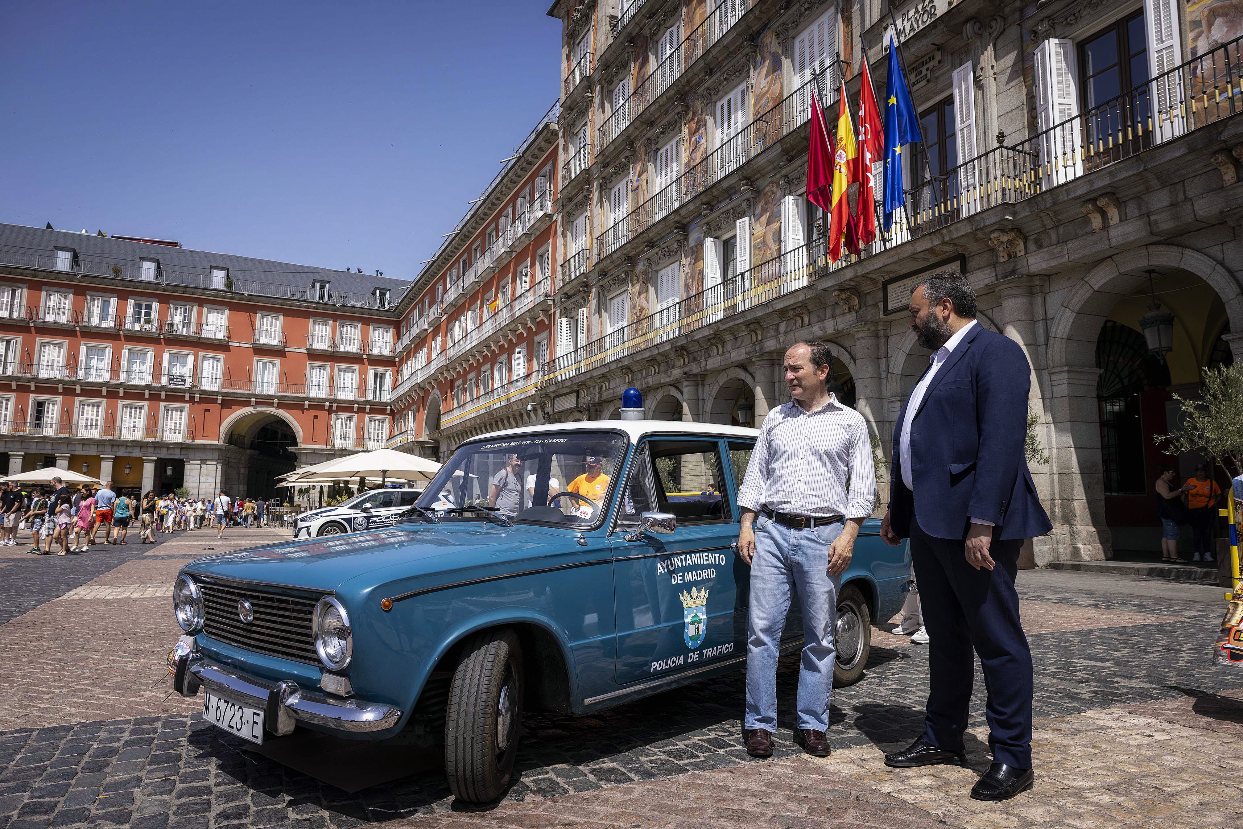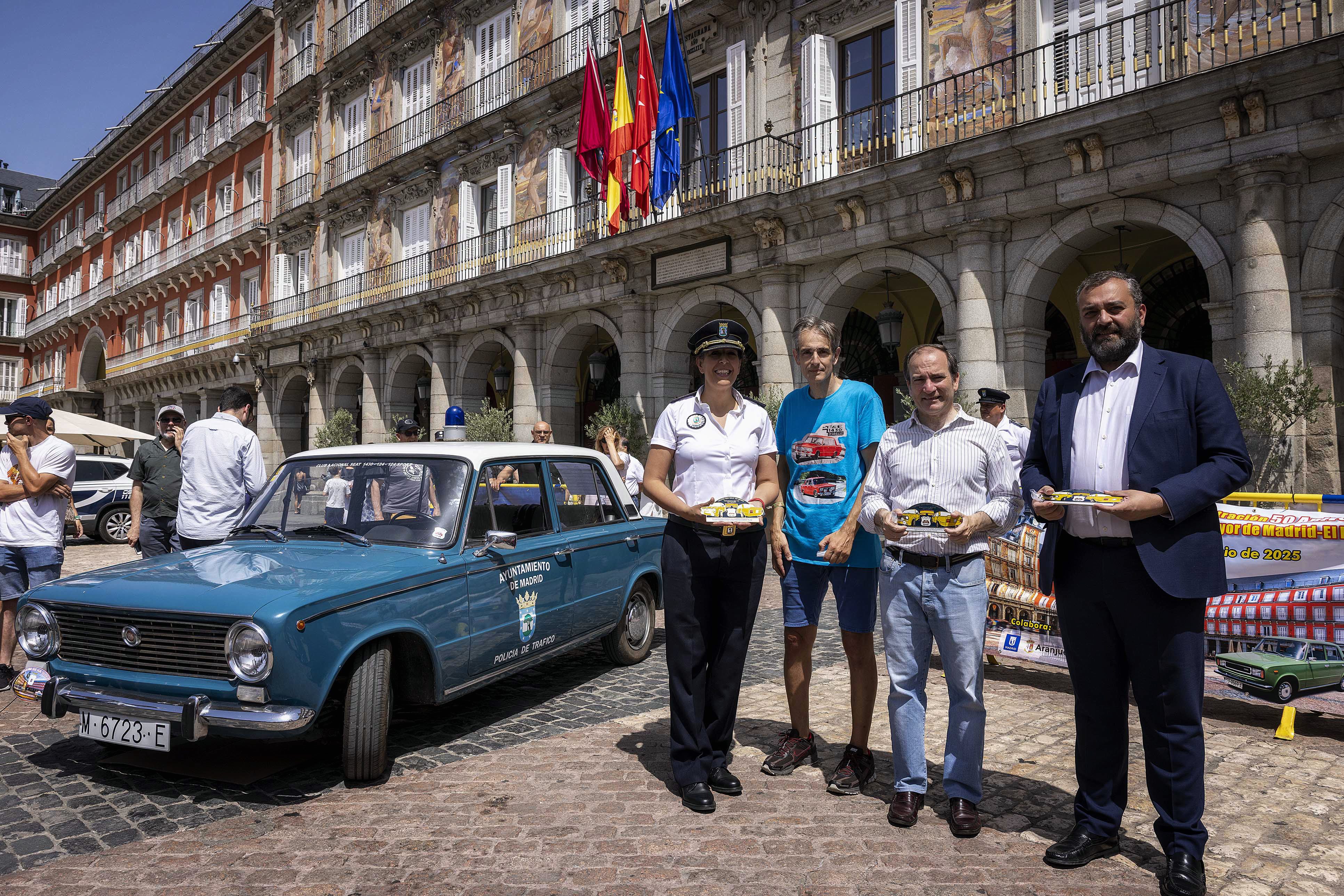 La plaza Mayor se ha convertido esta mañana en un museo al aire libre con la exhibición de medio centenar de vehículos SEAT 124, 124 Sport y 1430 con motivo del 50º aniversario del primer modelo, iniciativa del Club Nacional SEAT 1430, 124 y 124 Sport para poner en valor el papel que ha desempeñado el que ha sido uno de los vehículos más populares del país durante años. El delegado de Urbanismo, Medio Ambiente y Movilidad, Borja Carabante, y el concejal de Centro, Carlos Segura, han visitado la muestra y recibido una placa de reconocimiento por el apoyo del Ayuntamiento de Madrid a esta cita sociocultural.
