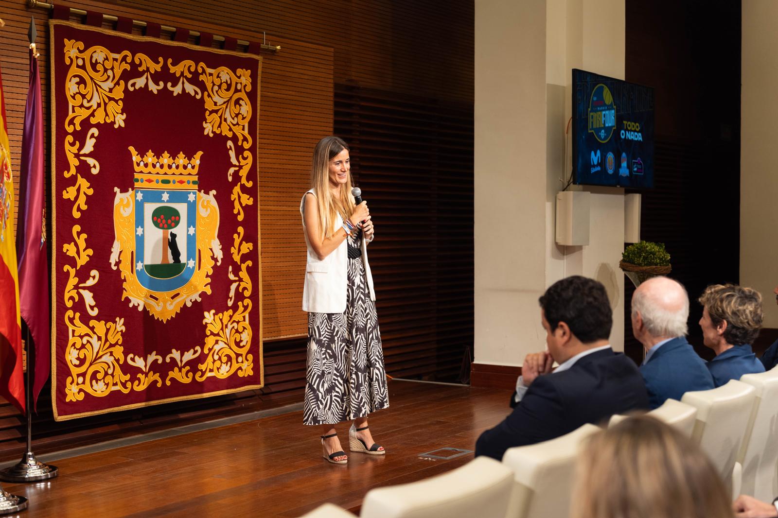 La concejala delegada de Deporte, Sonia Cea, ha participado esta mañana en la presentación de la Final Four de la Liga LEB Oro 2024 que, bajo el lema ‘Todo o nada’, se celebrará mañana, sábado día 8, y el domingo 9 de junio en el Pabellón Multiusos Madrid Arena, una de las principales instalaciones deportivas con las que cuenta el Consistorio madrileño.