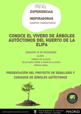 Experiencia Inspiradora Vivero Árboles Autóctonos en el huerto La Elipa: domingo 16 de noviembre a las 11:30h