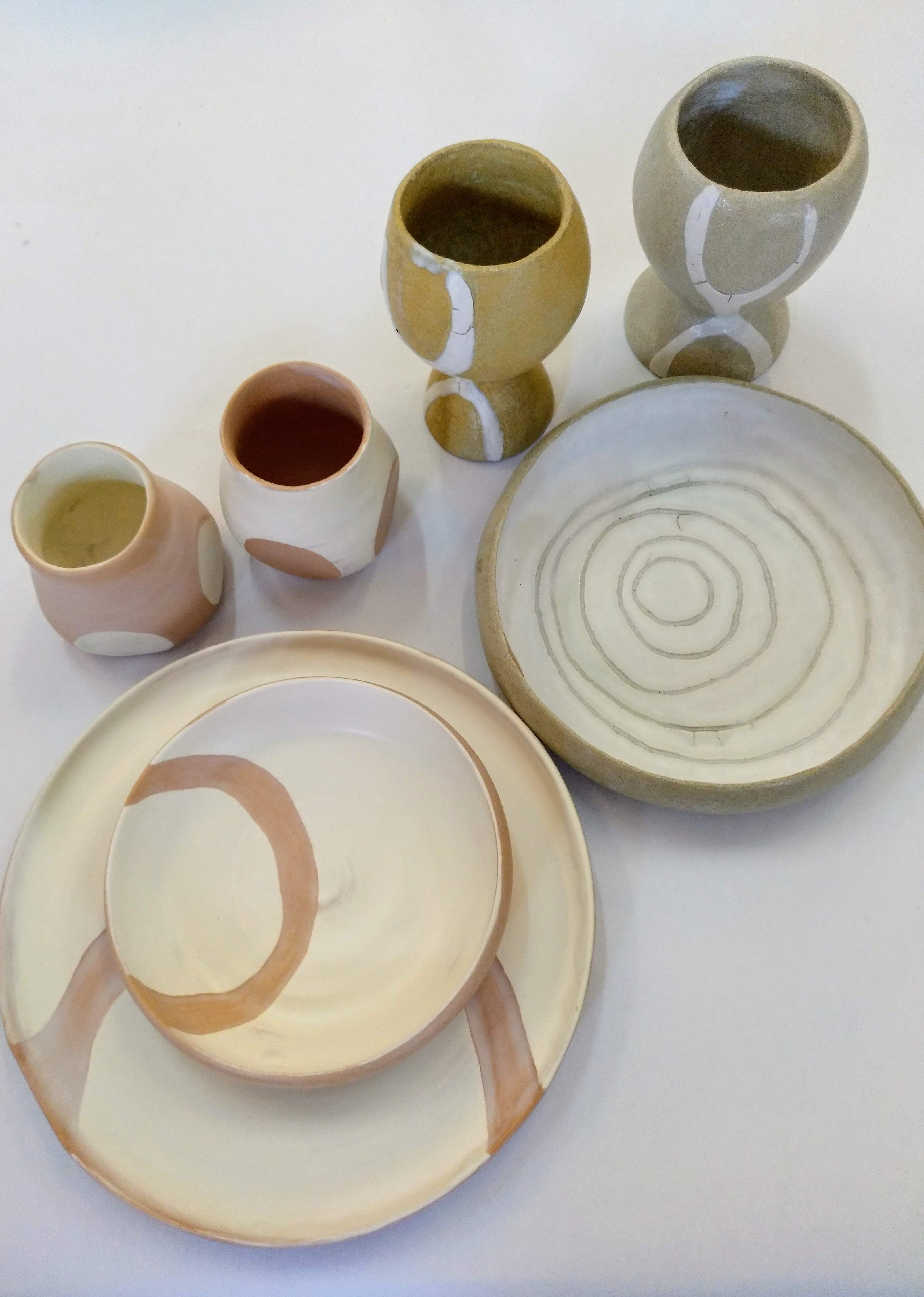 Todas las piezas están aunadas con la creatividad y el diseño de las/os alumnas/os que en torno a esta mesa nos invitan a degustar su amor por la cerámica.