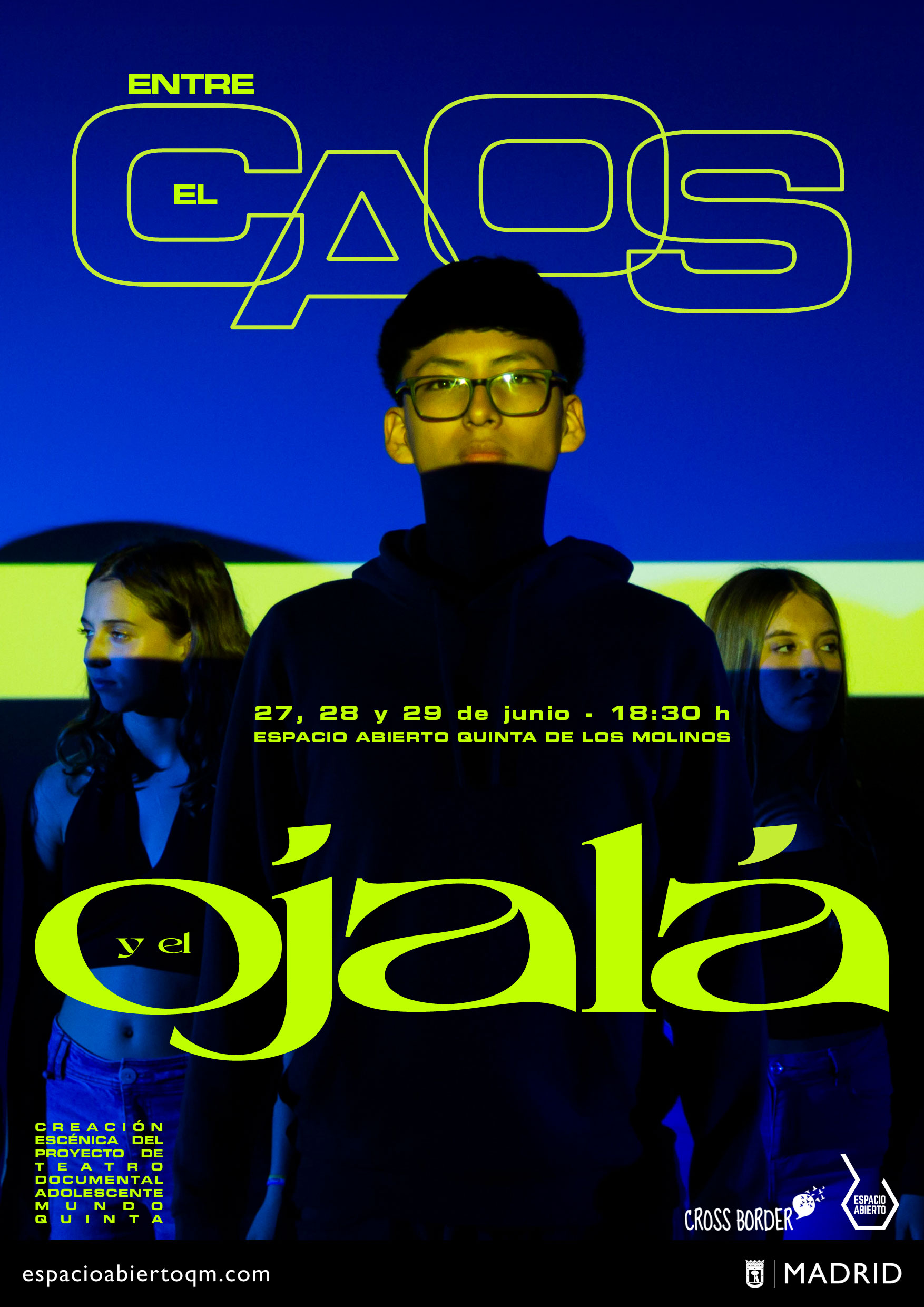 Espacio Abierto, centro del Área de Cultura, Turismo y Deporte dedicado a la infancia y la adolescencia, estrena en junio la producción propia Entre el caos y el ojalá. Esta obra, que se representará en el Auditorio los días 27, 28 y 29 de junio, a las 18:30 horas, es el resultado de la séptima edición de Mundo Quinta, el proyecto anual de teatro documental de Espacio Abierto de la mano de Cross Border Project.
