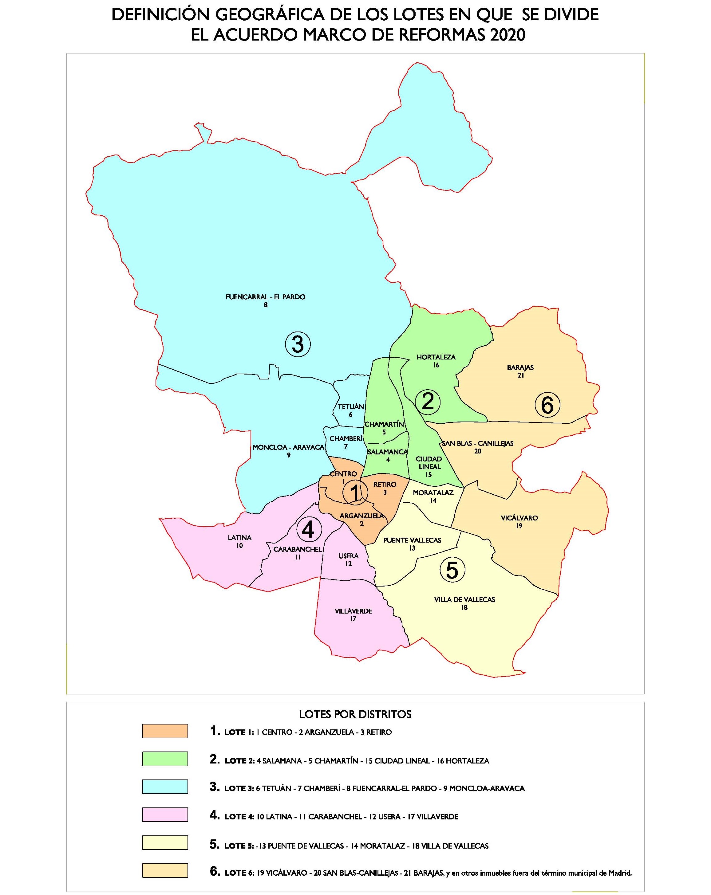 - El acuerdo marco se divide en seis lotes por zonas diferenciadas, de manera que se tiene en cuenta la distribución geográfica de los distritos