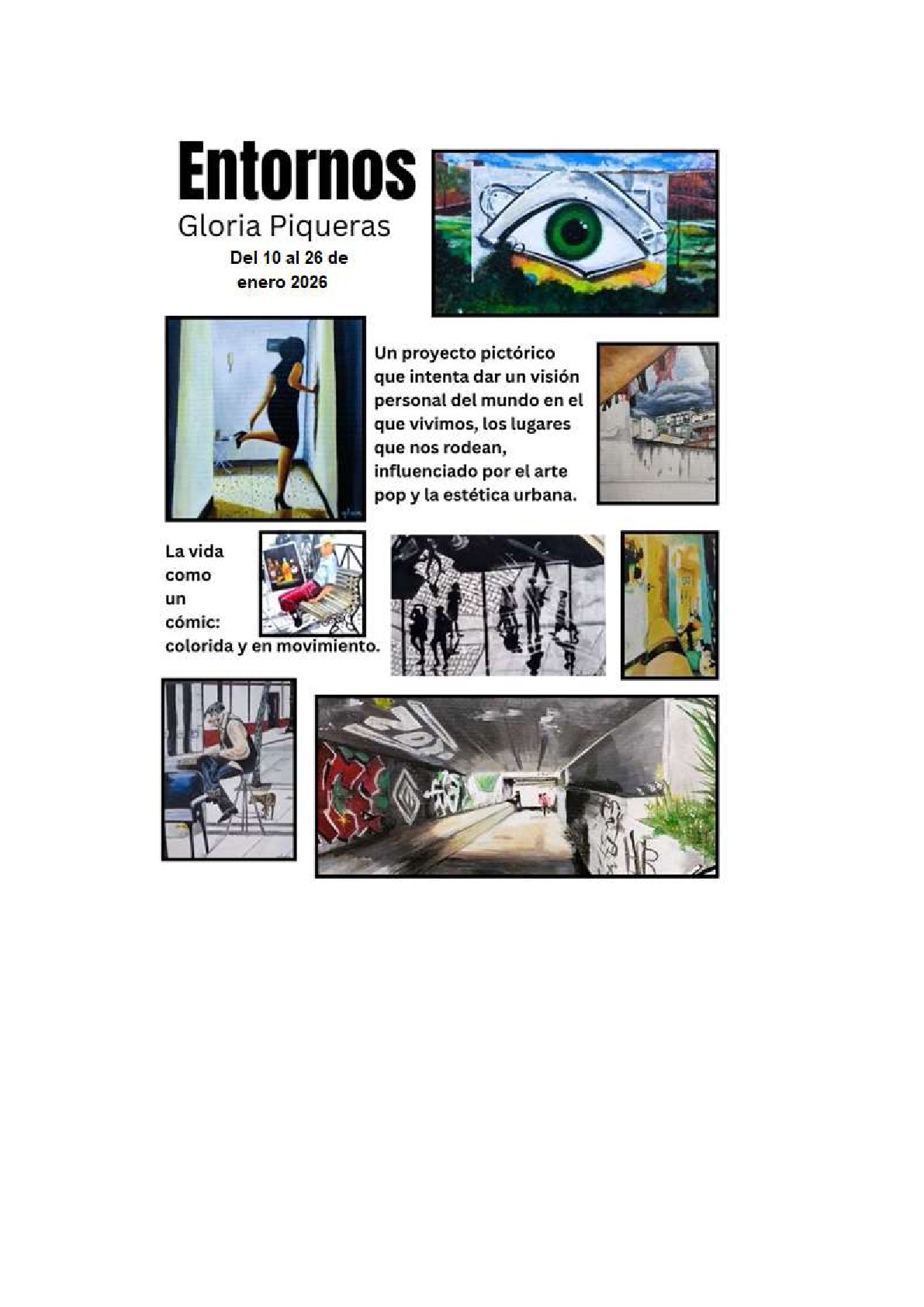 `Entornos´ es un proyecto pictórico que intenta dar una visión personal del mundo en el que vivimos, los lugares que nos rodean, influenciado por el arte pop y la estética urbana.