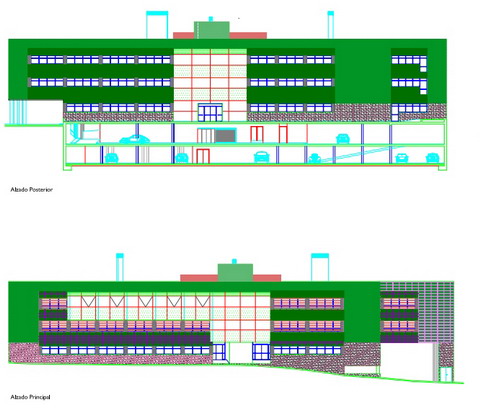 - En la planta baja se sitúa la zona de organización común y el centro de enfermos de Alzheimer, que cuenta con rehabilitación, enfermería, sala de contención, talleres, comedor y office, aseos, duchas geriátricas y terraza.