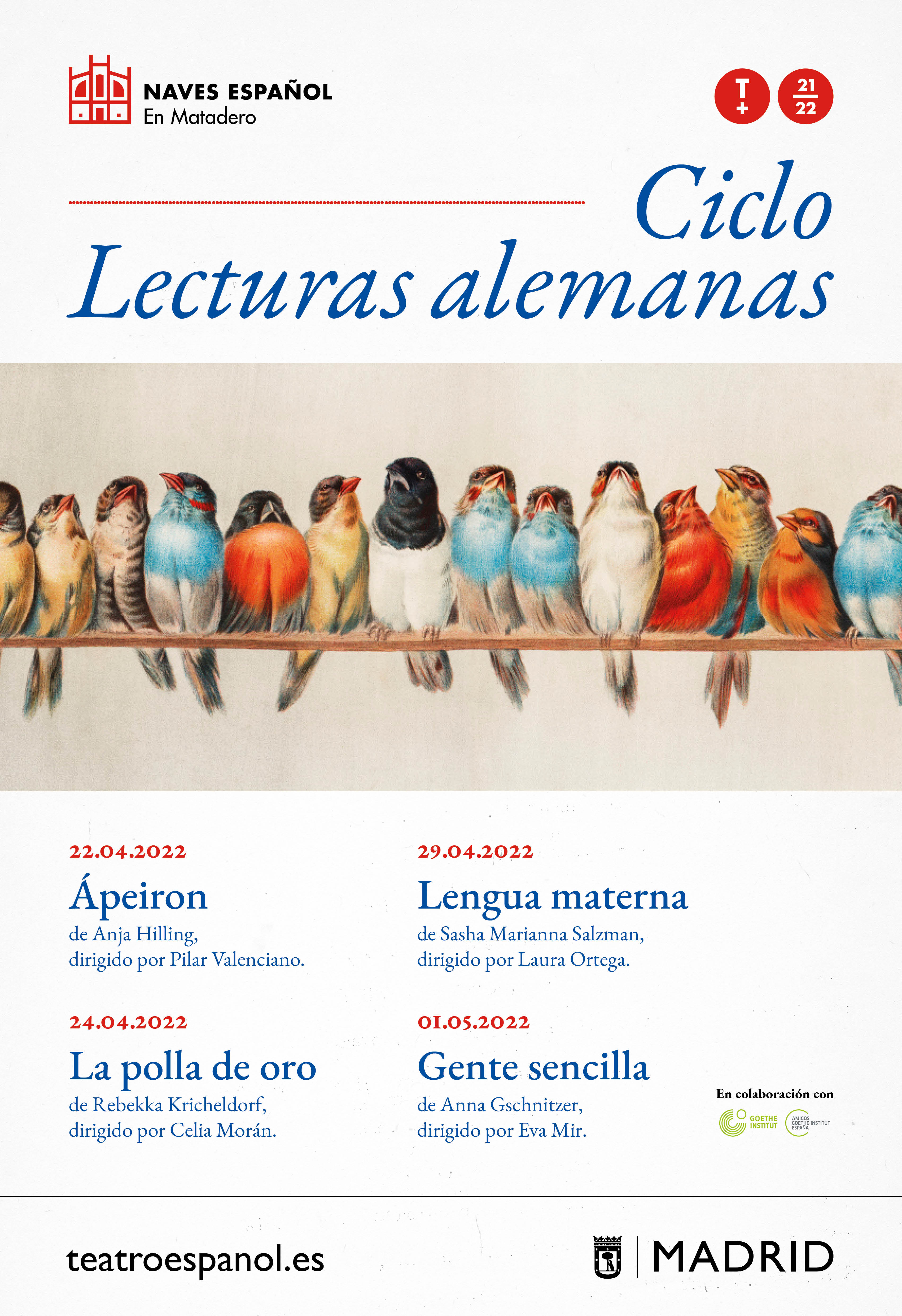 Dentro del ciclo “Lectura Alemanas”, Naves del Español presenta los mejores textos de la dramaturgia del país centroeuropeo de la mano de reconocidos profesionales de la escena española. Este domingo pone en escena Gente sencilla, de Anna Gschnitzer, una obra que plantea hasta qué punto el origen social determina el futuro de las personas. A Alex, su protagonista, le quedaron desde niña muy claras las diferencias entre una clase privilegiada y la suya. Para escapar de su humilde medio trabajó con todas sus fuerzas. Y parece que funcionó. Ahora, veinte años después, trabaja como curadora en un museo de arte contemporáneo. Pero la impresión de no pertenecer simplemente no desaparece y tampoco desaparece el anhelo por ello. Ella siempre se siente como una impostora. No negar los orígenes y al mismo tiempo encontrar el propio lugar parece una tarea imposible.