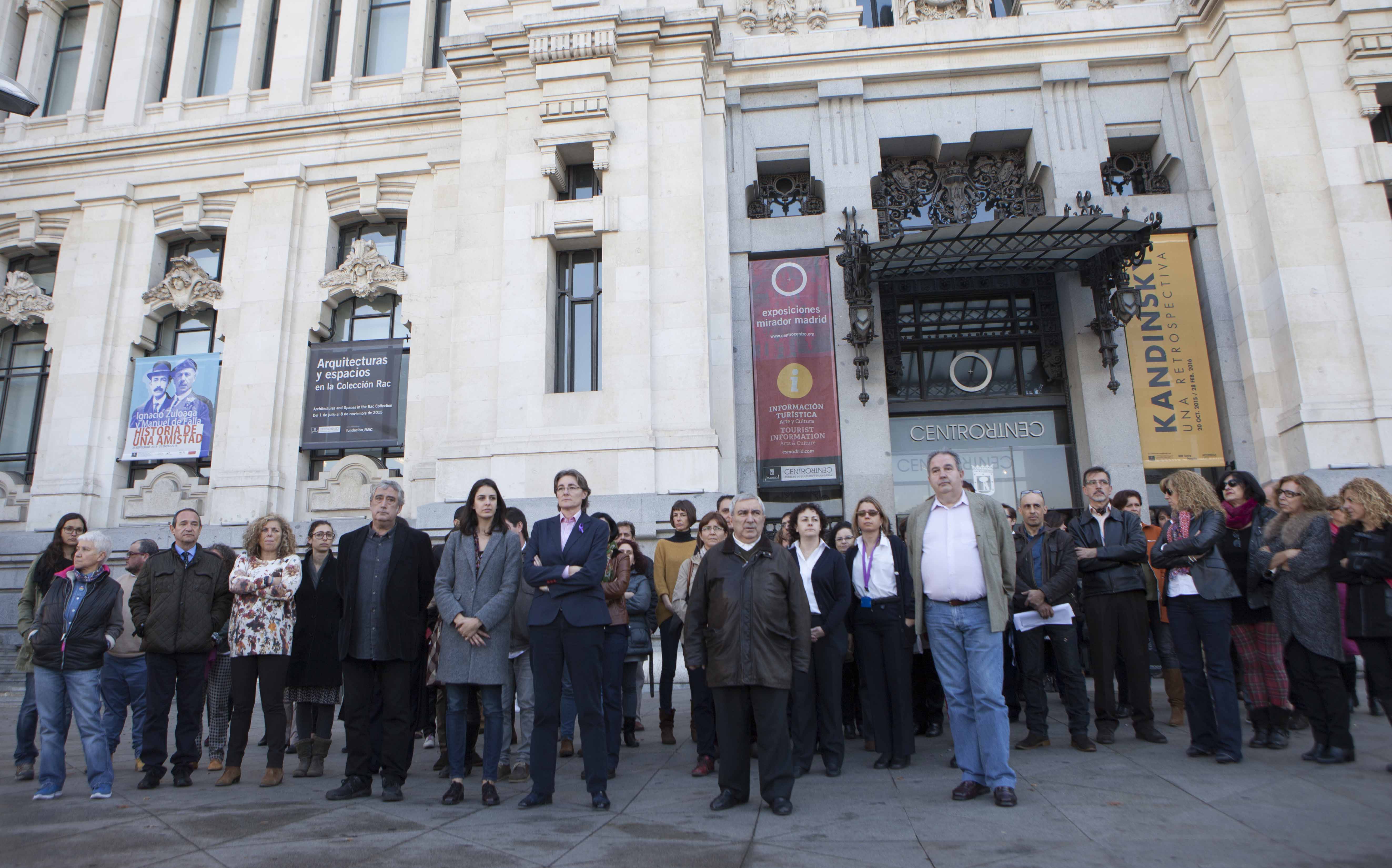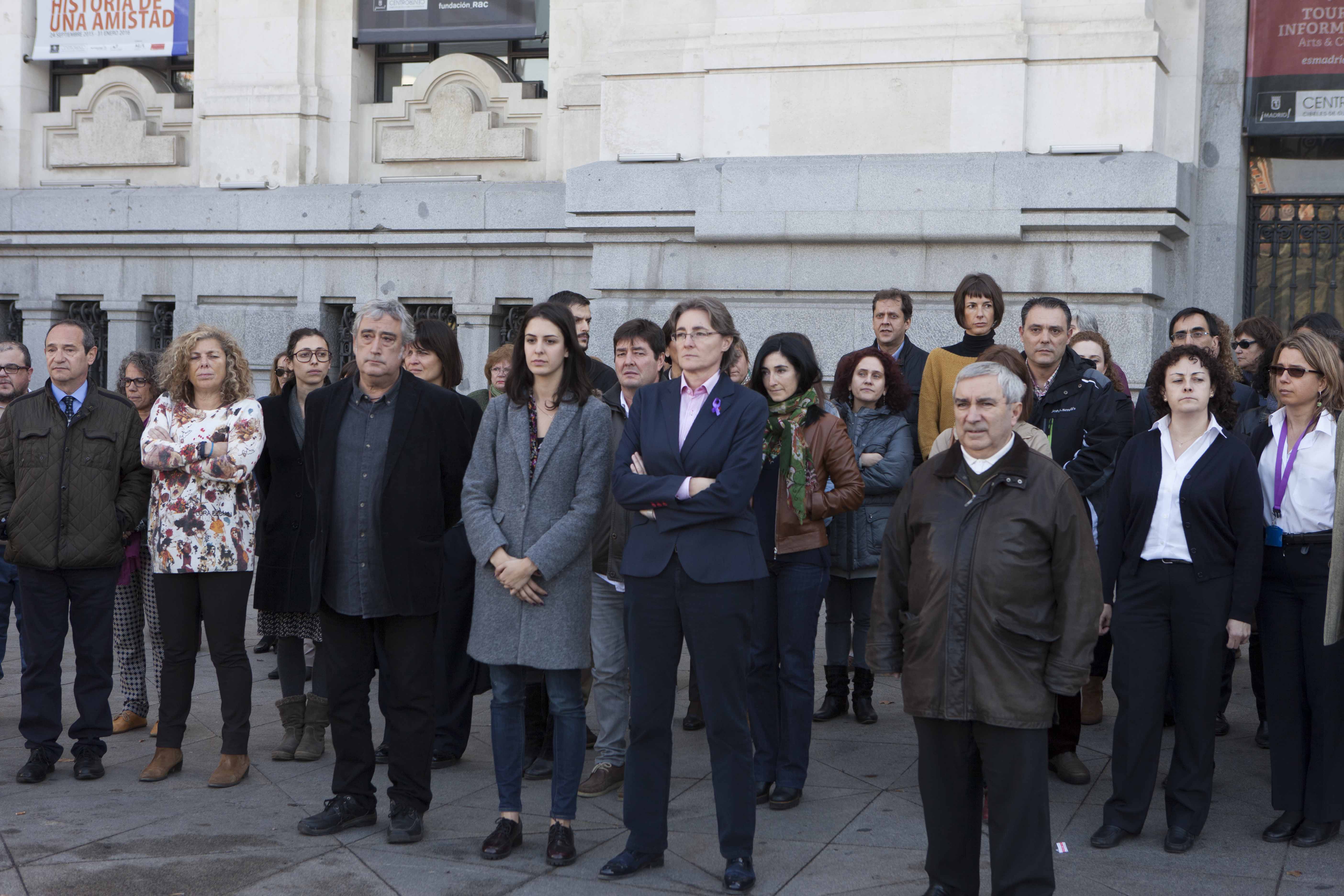 Los trabajadores y trabajadoras del Ayuntamiento de Madrid han guardado hoy un minuto de silencio ante las puertas de las diferentes dependencias municipales para mostrar su repulsa y condenar los asesinatos de tres mujeres este fin de semana en diferentes puntos del país. "Aunque no estamos aquí hoy para denunciar únicamente estas tres muertes, sino para denunciar esta lacra que es la violencia de género y que provoca el asesinato de muchas mujeres a lo largo del año", ha señalado la delegada de Equidad, Derechos Sociales y Empleo, Marta Higueras, tras finalizar el minuto de silencio.
