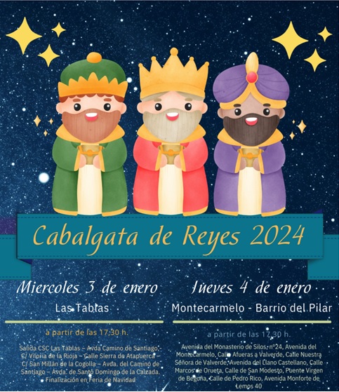 Recorrido: Salida CSC Las Tablas – Avda Camino de Santiago - C/ Viloria de la Rioja – Calle Sierra de Atapuerca – C/ San Millán de la Cogolla – Avda. del Camino de Santiago – Avda. de Santo Domingo de la Calzada. Finalización en Feria de Navidad.