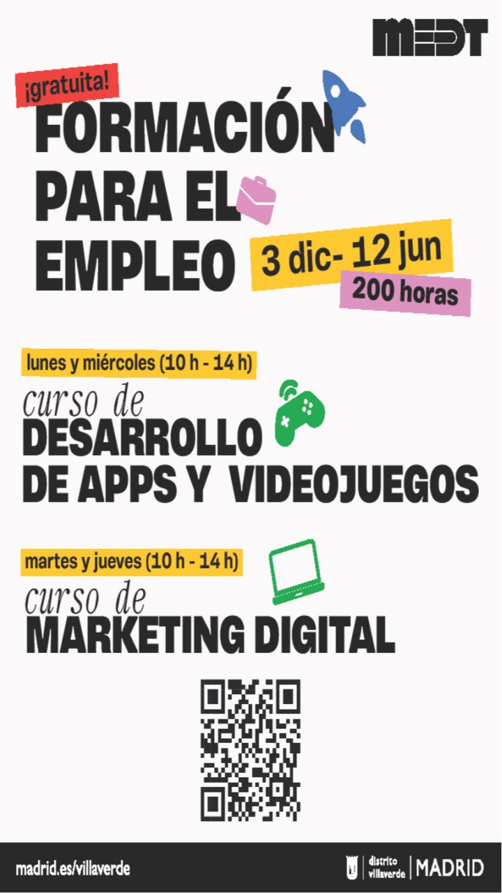 - Curso de Desarrollo de Apps y Videojuegos: Lunes y miércoles de 10:00 a 14:00 h.