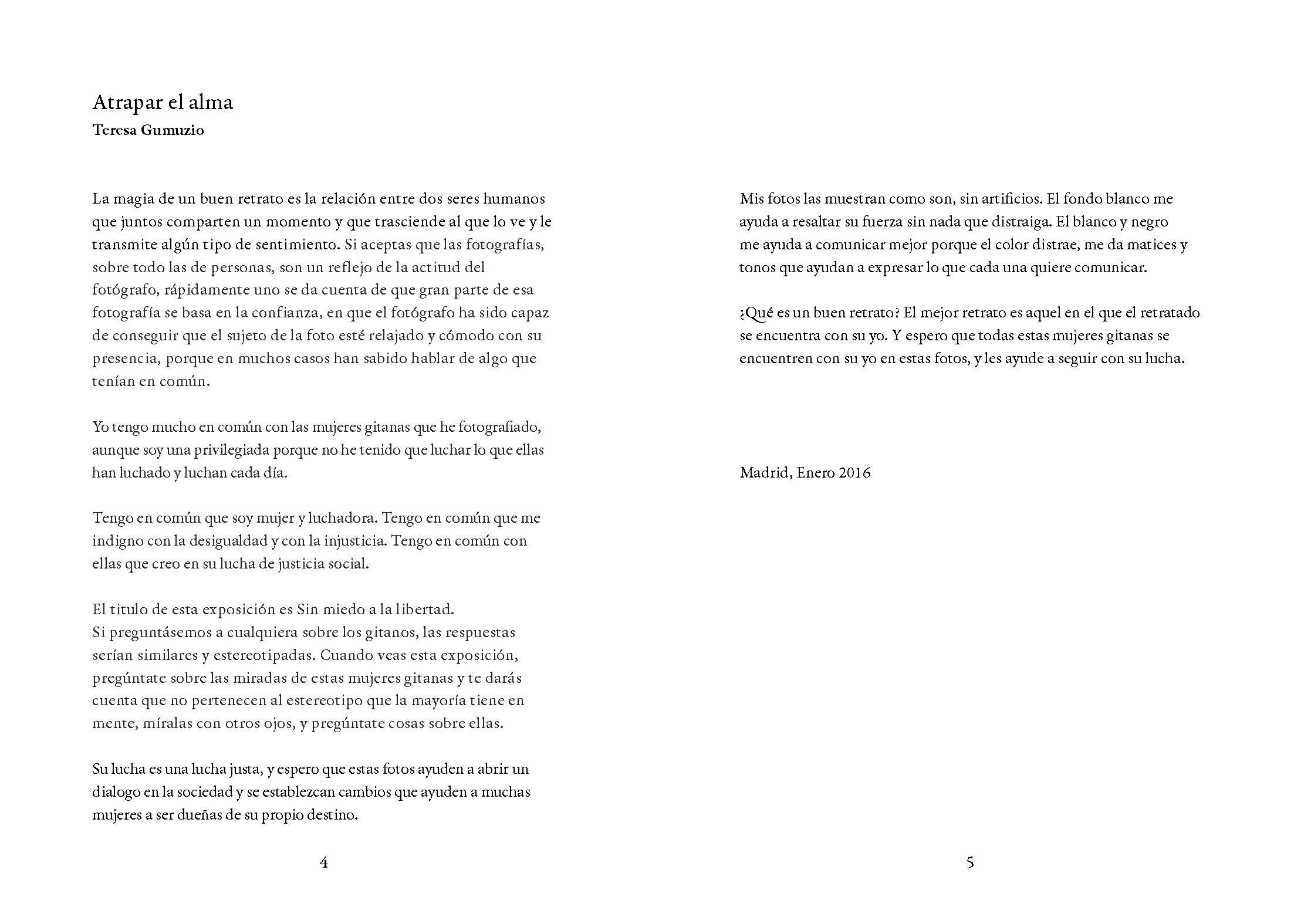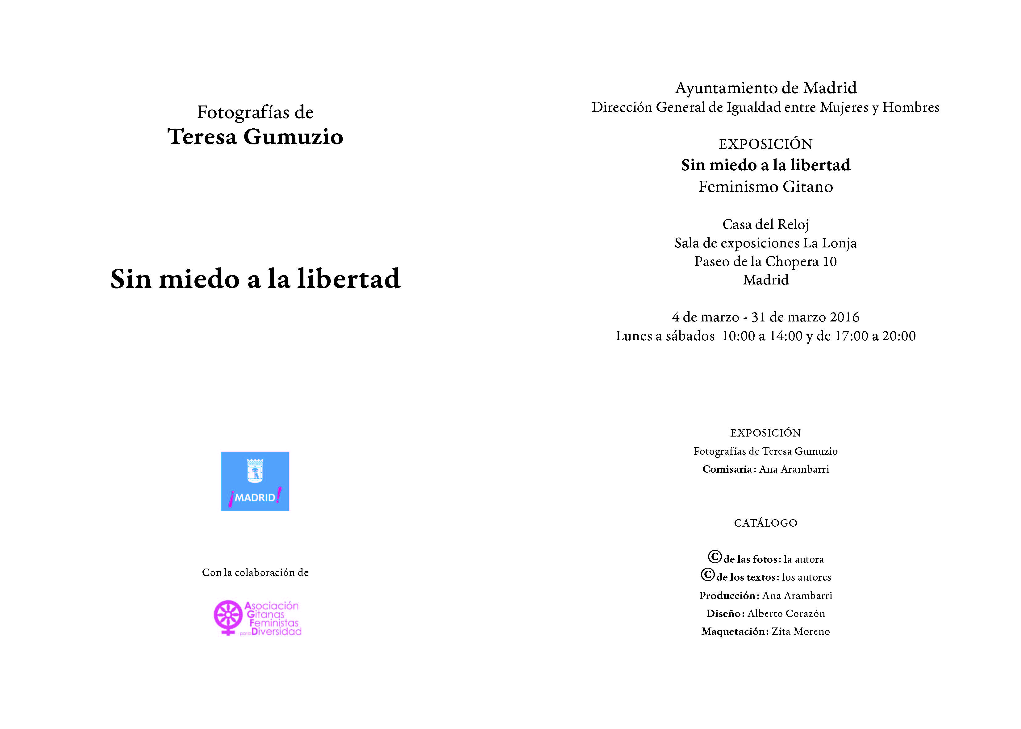 Catálogo de la exposición fotográfica "Gitanas feministas: Sin miedo a la libertad" de Teresa Gumizio