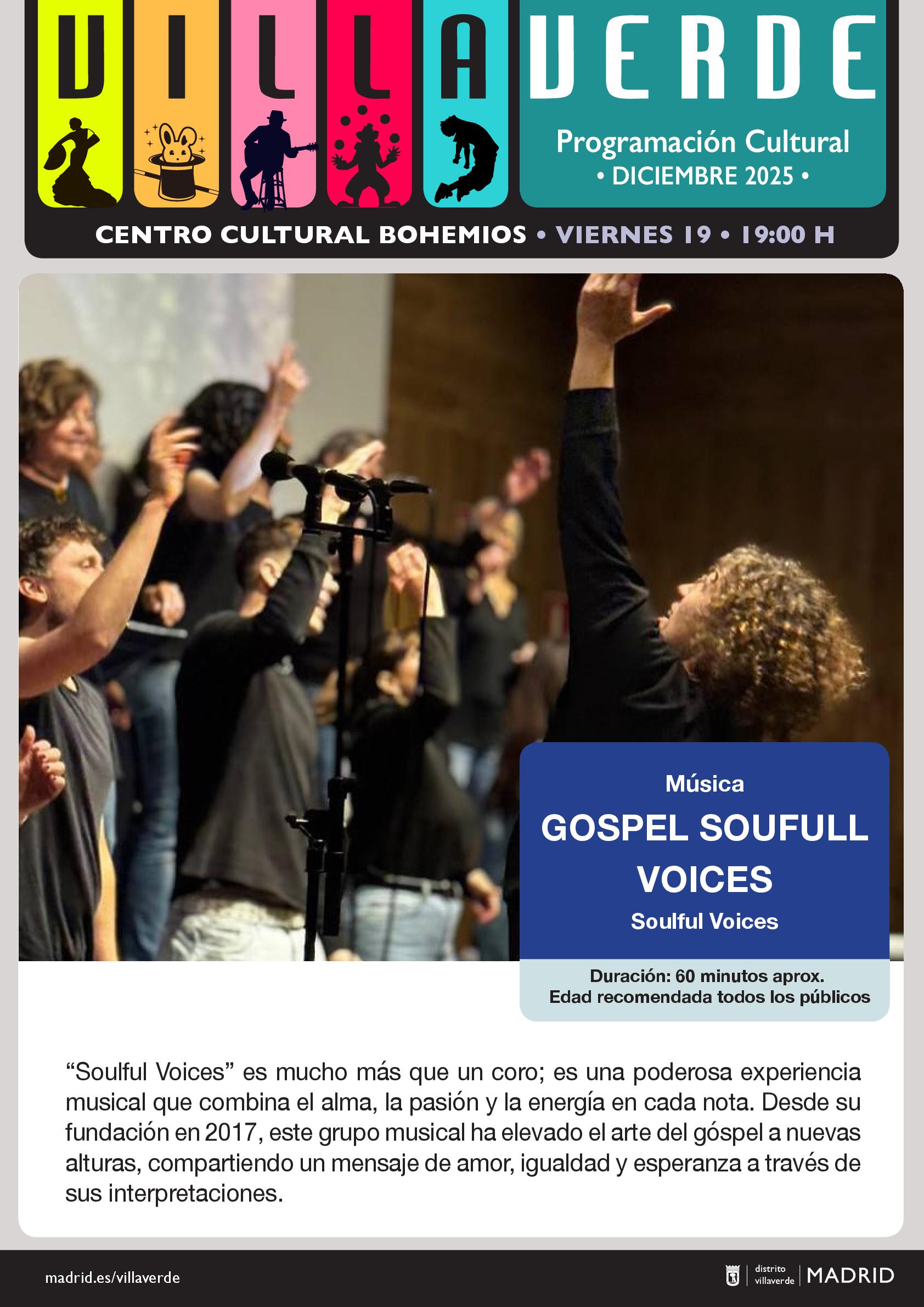 Sinopsis: `Soulful Voices´ es mucho más que un coro; es una poderosa experiencia musical que combina el alma, la pasión y la energía en cada nota. Desde su fundación en 2017, este grupo musical ha elevado el arte del góspel a nuevas alturas, compartiendo un mensaje de amor, igualdad y esperanza a través de sus interpretaciones.