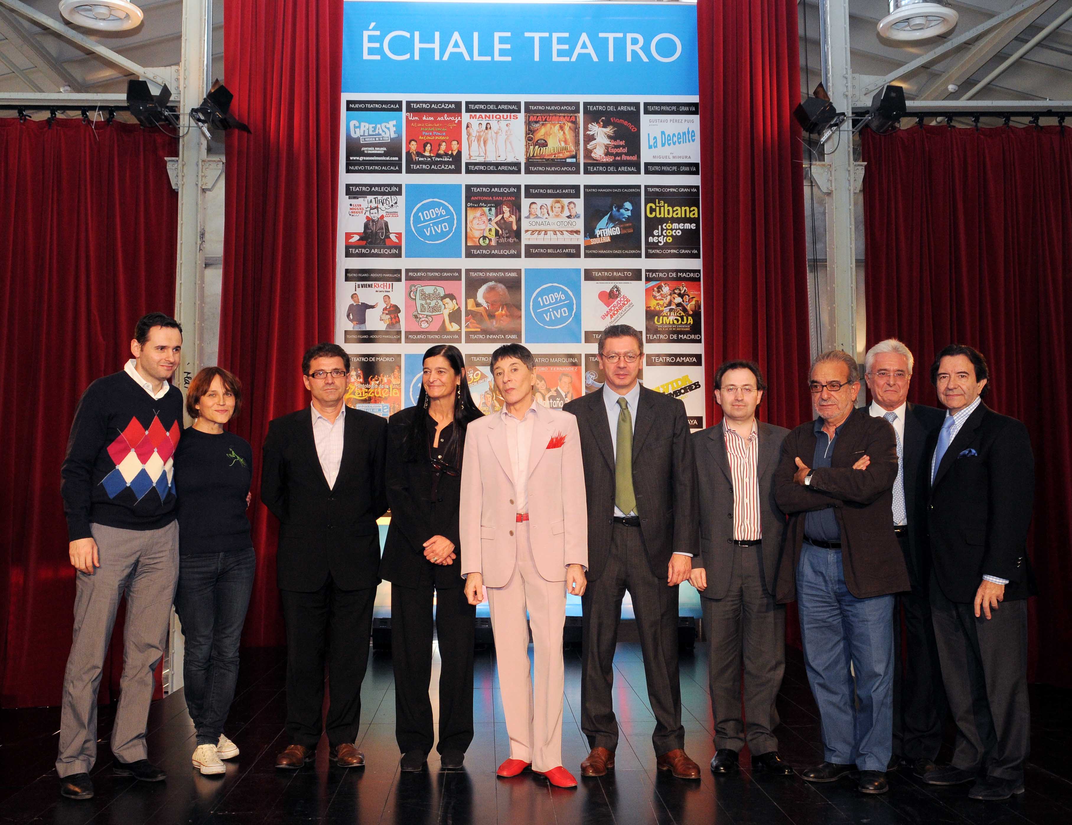 Distintas imágenes de la campaña municipal de apoyo al teatro, presentada por el alcalde de la Ciudad de Madrid, Alberto Ruiz-Gallardón, junto a la delegada de Las Artes, Alicia Moreno. El prestigioso actor teatral Ángel Pavlosvsky ofició de conductor del evento en el que estuvieron presentes empresarios teatrales.
