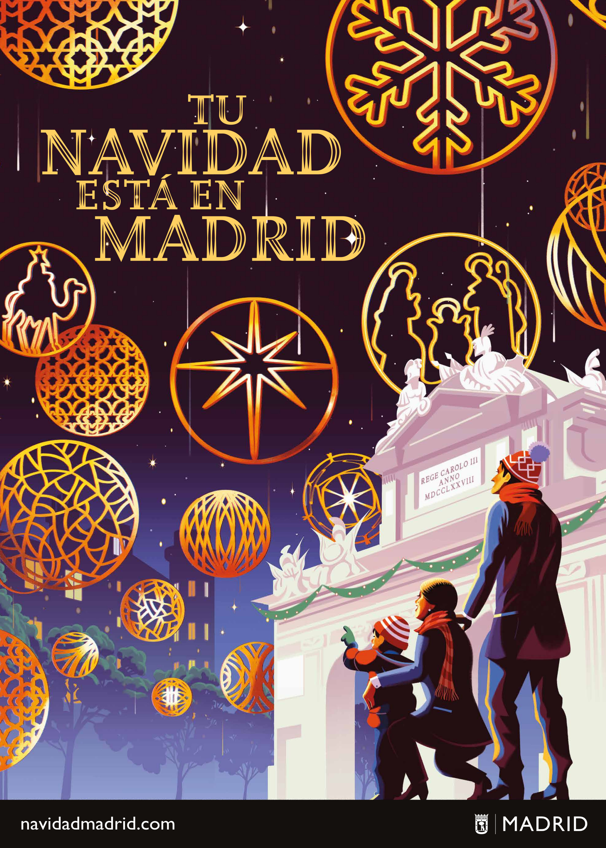 Bajo el lema `Tu Navidad está en Madrid´ el Ayuntamiento de la capital, a través del Área de Cultura, Turismo y Deporte, felicita las próximas fiestas navideñas a madrileños y visitantes con una imagen diseñada por el ilustrador Francesco Bongiorni, distinguido este año con la Medalla de Oro de la Society of Illustrators de Nueva York y que, según afirma, “he querido reflejar la atmósfera de Madrid en una noche de Navidad y la tranquilidad de disfrutar de una ciudad que es extremadamente acogedora y que recibe a todo el mundo con los brazos abiertos”.