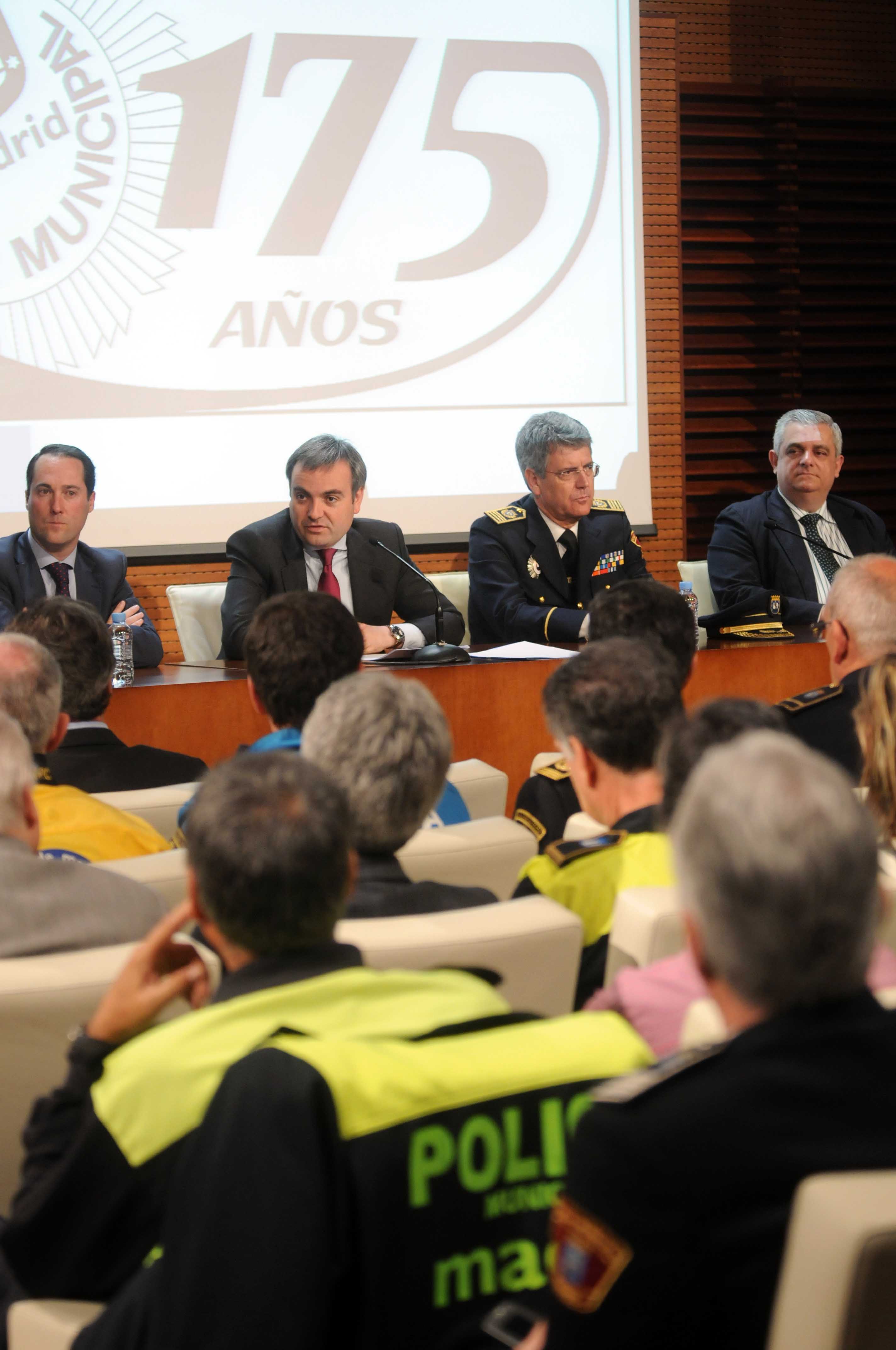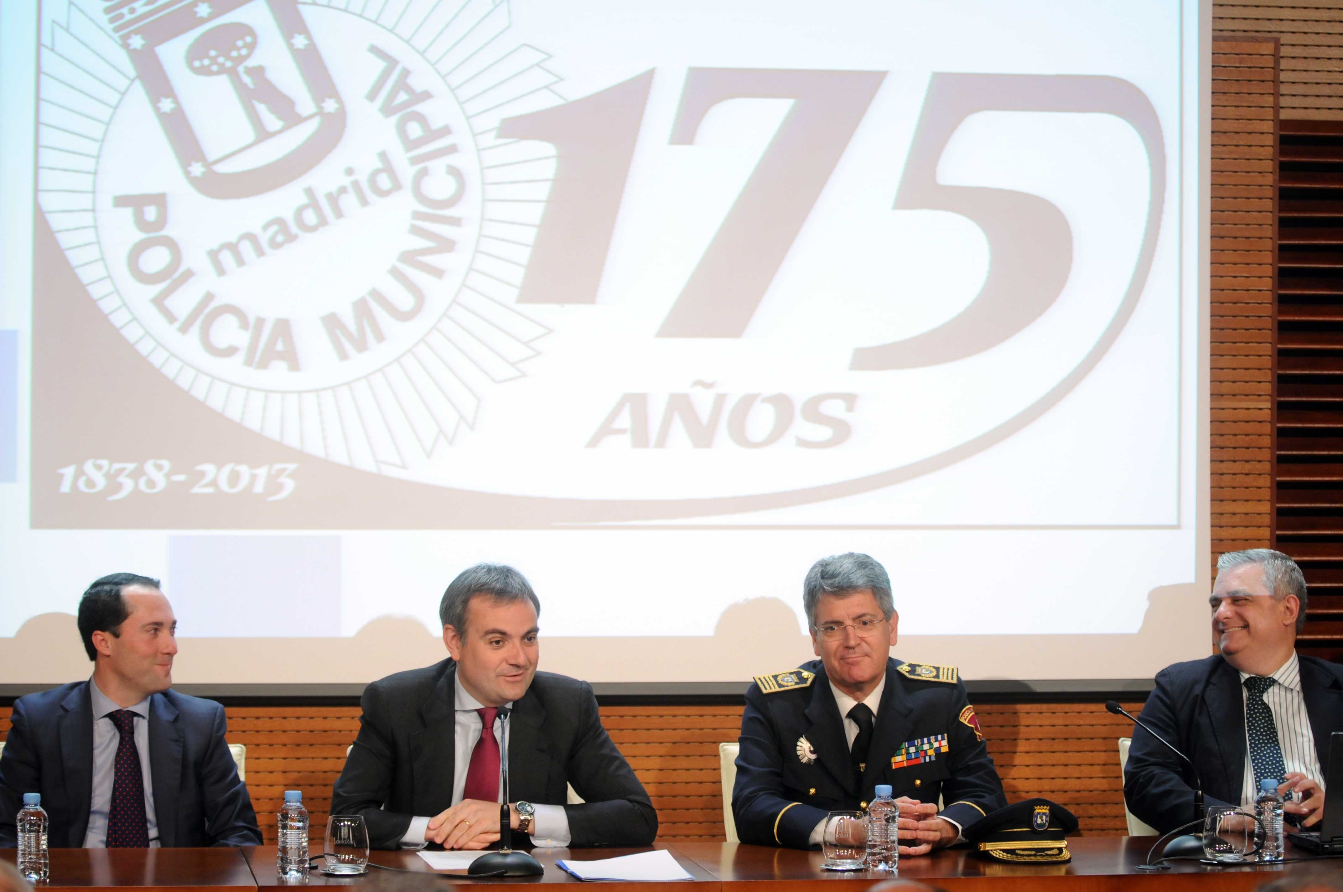Imágenes de la presentación de las actividades con motivo del 175 aniversario de la creación del Cuerpo de Policía Municipal y de la festividad de su patrón, San Juan, el próximo mes de junio. El delegado de Seguridad y Emergencias, Enrique Núñez, ha destacado que el 75% de los madrileños respalda la labor de la Policía Municipal. El acto ha tenido lugar en el Palacio de Cibeles.