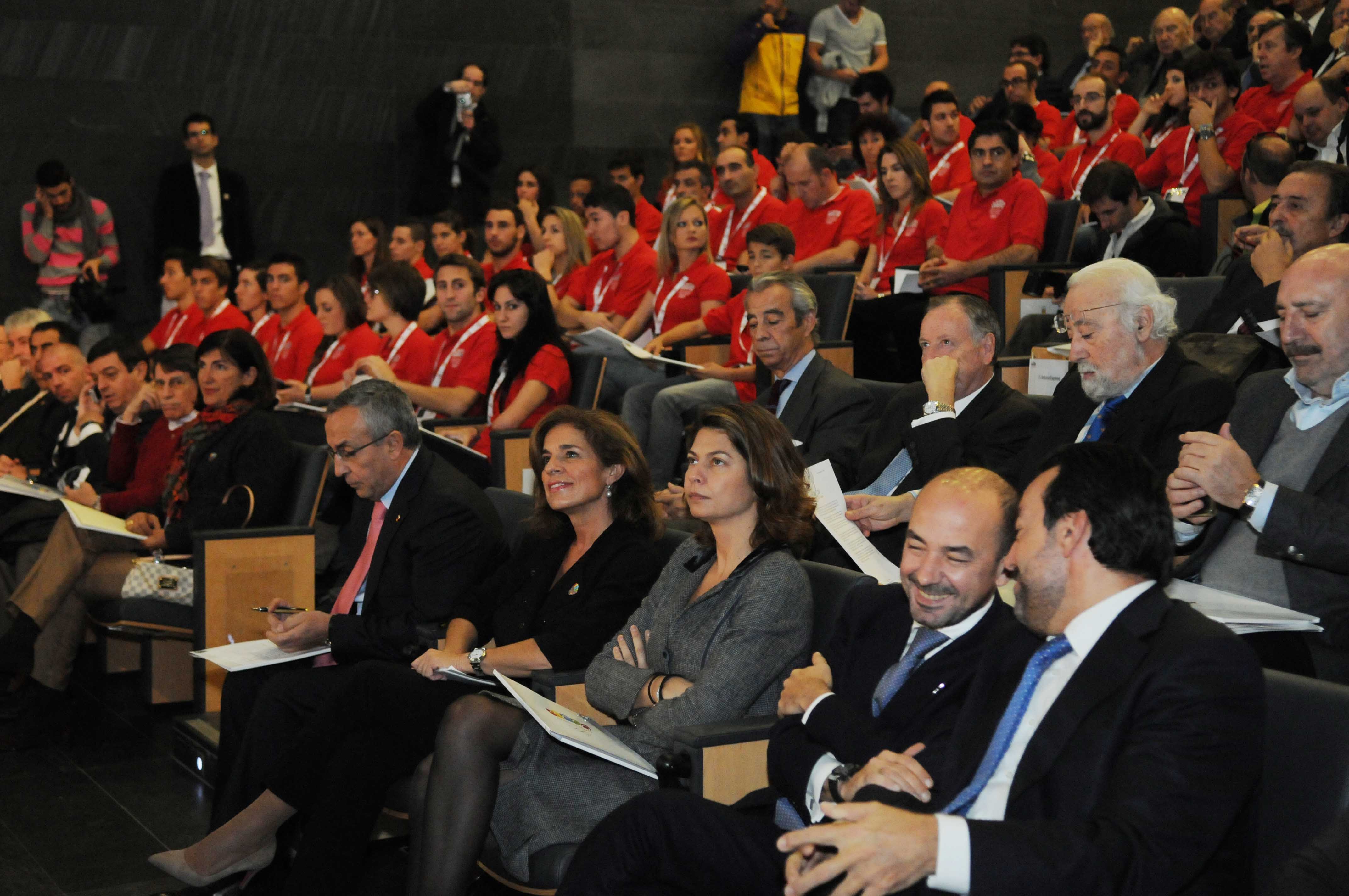La alcaldesa de Madrid, Ana Botella, y el presidente del COE y presidente de la Sociedad Madrid 2020, Alejandro Blanco, han asistido hoy a la presentación de los primeros 20 abanderados de la candidatura olímpica madrileña. A la gala "20 de 20, unidos por un sueño" han acudido también los periodistas que se encargarán de seguir y difundir los logros de estos jóvenes deportistas.