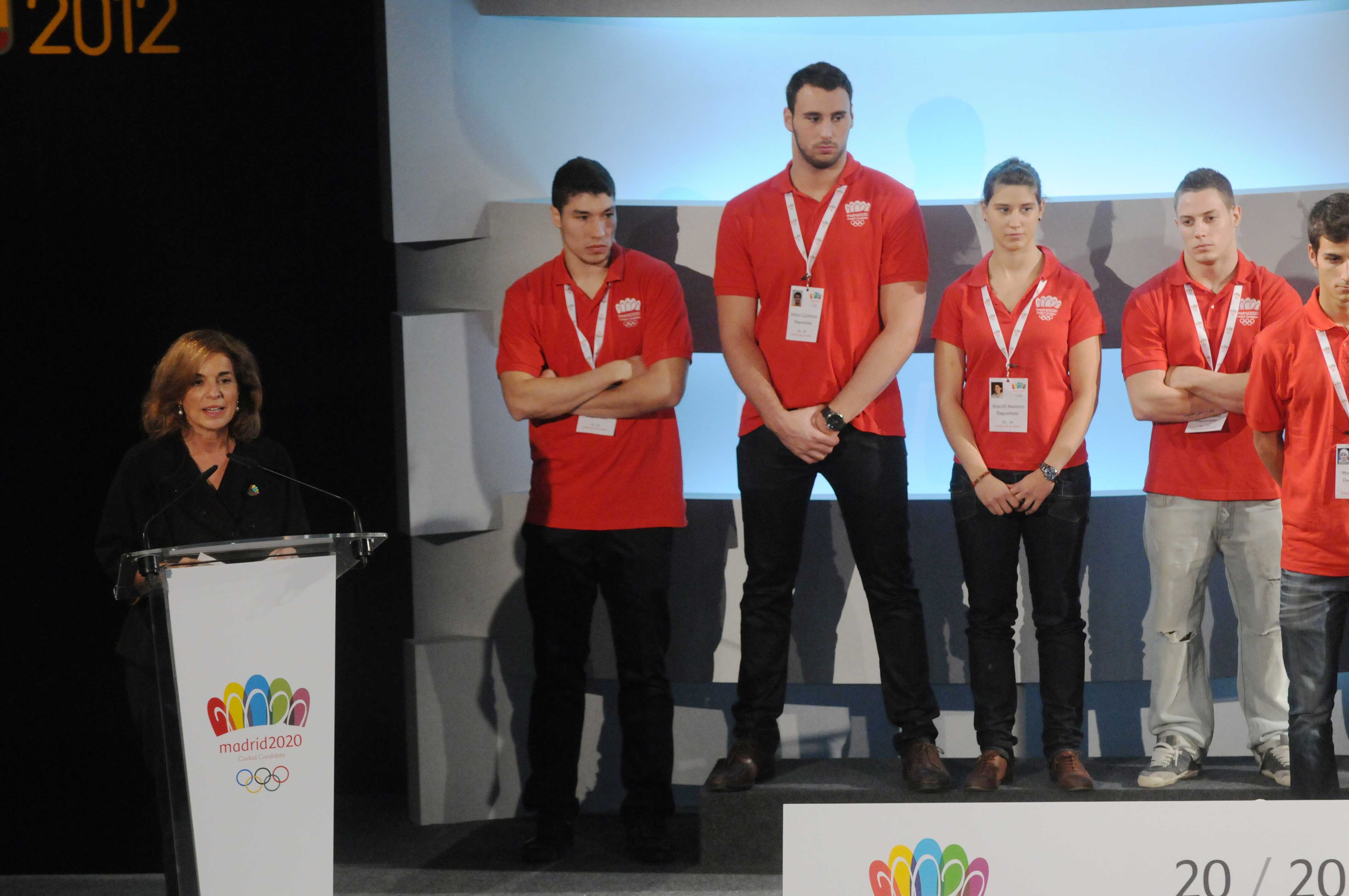Madrid 2020 presenta la primera parte de ‘20 /20, unidos por un sueño', un proyecto que ensalza los valores olímpicos de las futuras estrellas del deporte español. En este acto, 20 jóvenes talentos de múltiples disciplinas se han convertido en los primeros abanderados de la Candidatura de Madrid para albergar los Juegos Olímpicos y Paralímpicos de 2020. Lo han hecho acompañados por la alcaldesa de Madrid, Ana Botella, y el presidente del Comité Olímpico Español y de la Sociedad Madrid 2020, Alejandro Blanco. "Sois nuestros primeros 20 abanderados -pues este programa va a tener continuidad-; pertenecéis a federaciones deportivas diferentes y provenís también de diferentes rincones de nuestra geografía. Porque la candidatura para los Juegos Olímpicos y Paralímpicos de Madrid 2020 es un proyecto de toda España", ha señalado Botella.