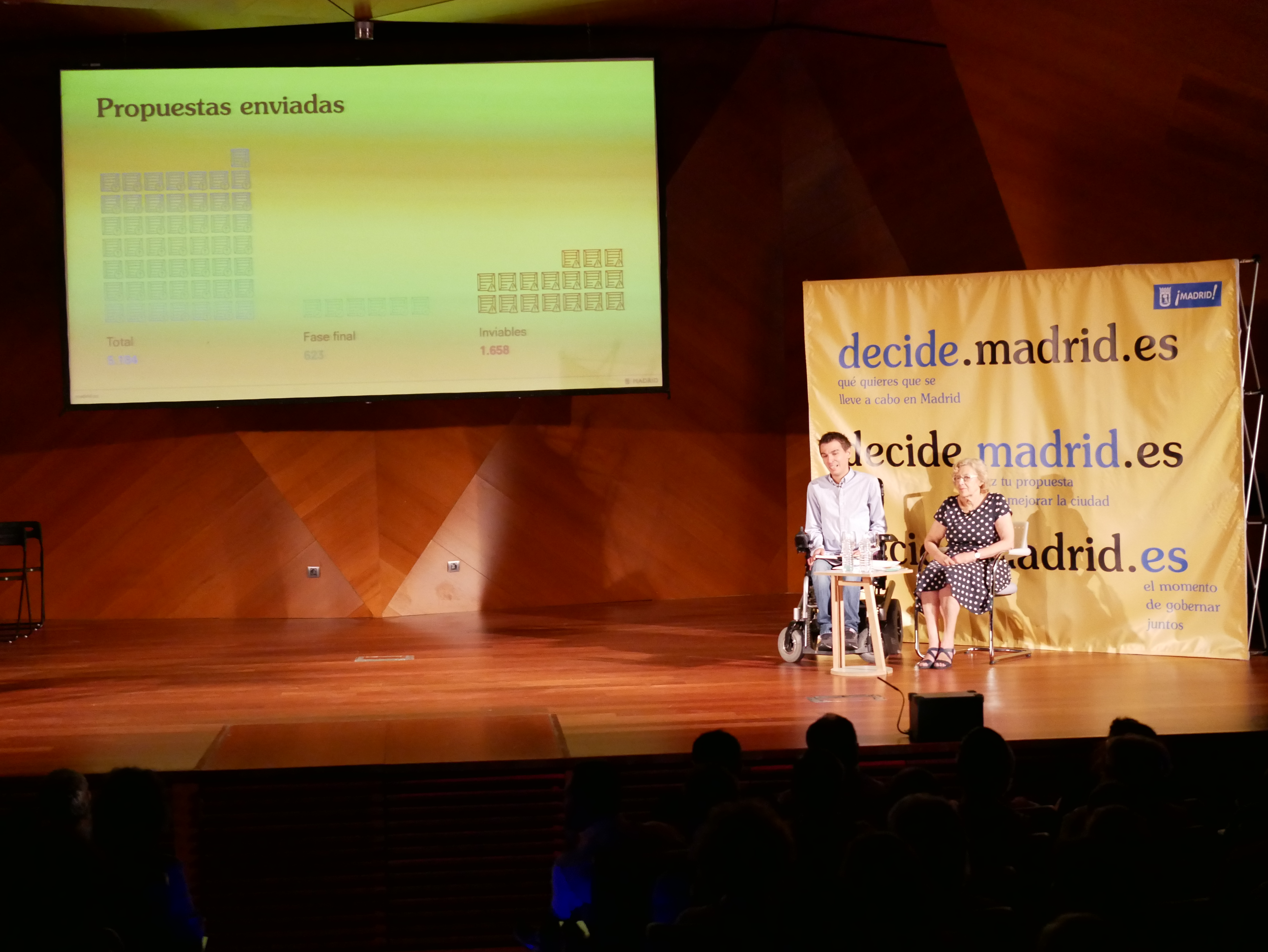 La alcaldesa Manuela Carmena, el delegado de Participación Transparencia y Gobierno Abierto, Pablo Soto y concejales de áreas, distritos y grupos municipales, participaron en el acto. Llegaron también mensajes de otros lugares del mundo donde se organizan procesos similares de democracia directa, como el de la alcaldesa de París, Anne Hidalgo, o representantes de Lausana, Barcelona y A Coruña.