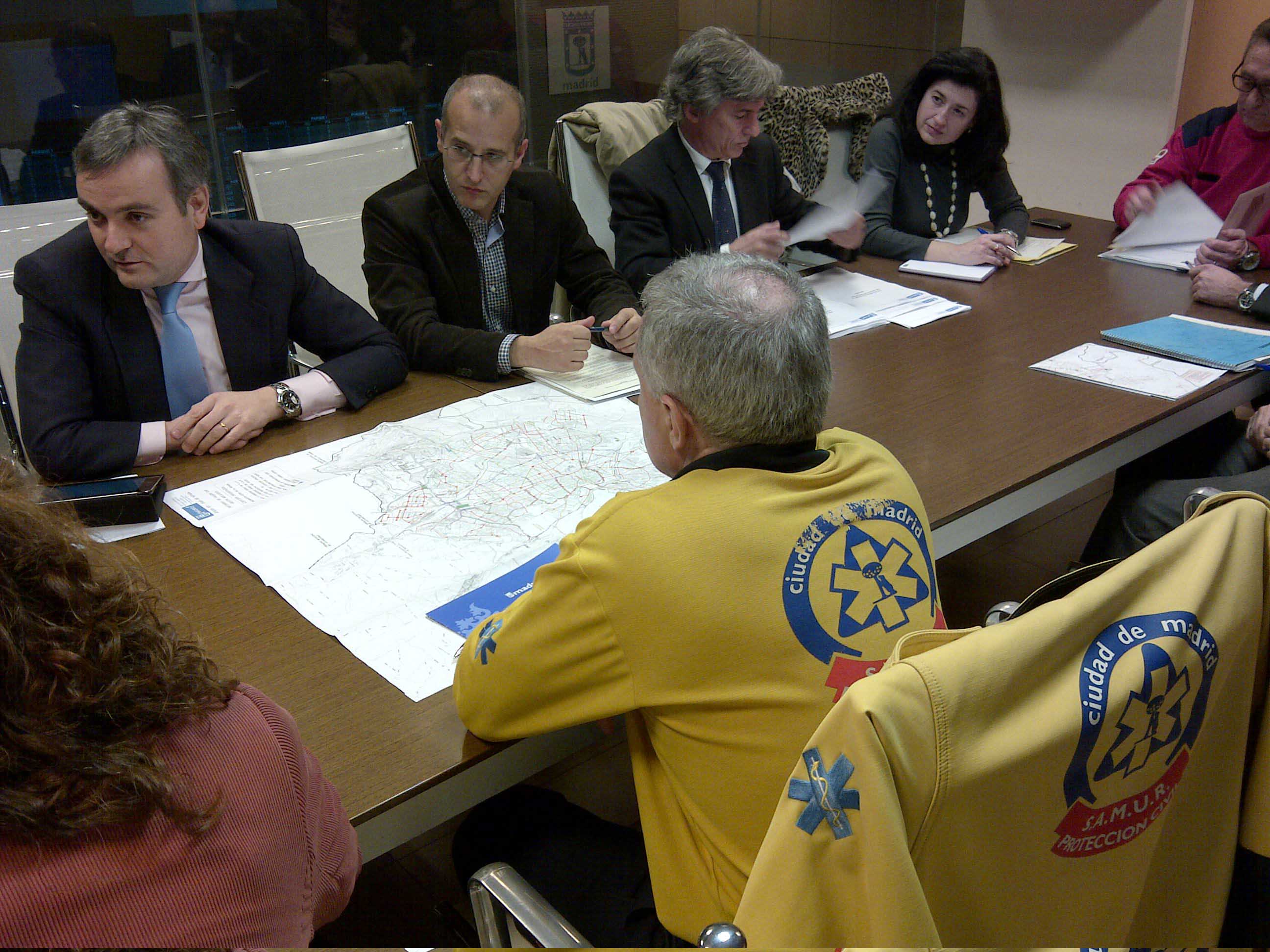 Enrique Núñez, delegado de Seguridad y Emergencias, se ha reunido esta tarde con el Grupo de Coordinación de Nevadas en la sede del Centro Integral de Seguridad y Emergencias del Ayuntamiento de Madrid (CISEM) para poner en marcha el protocolo de inclemencias invernales. Imagen del encuentro.