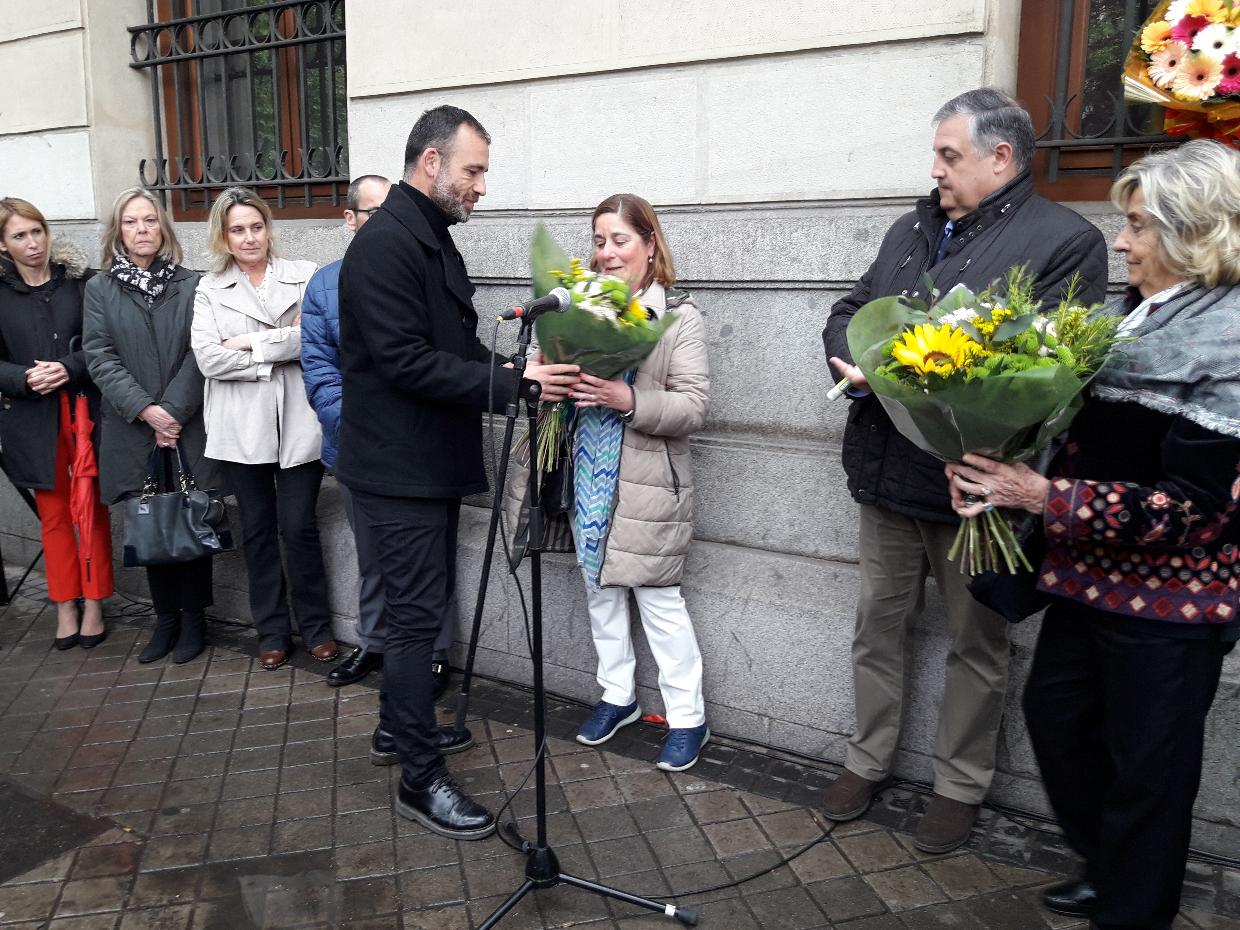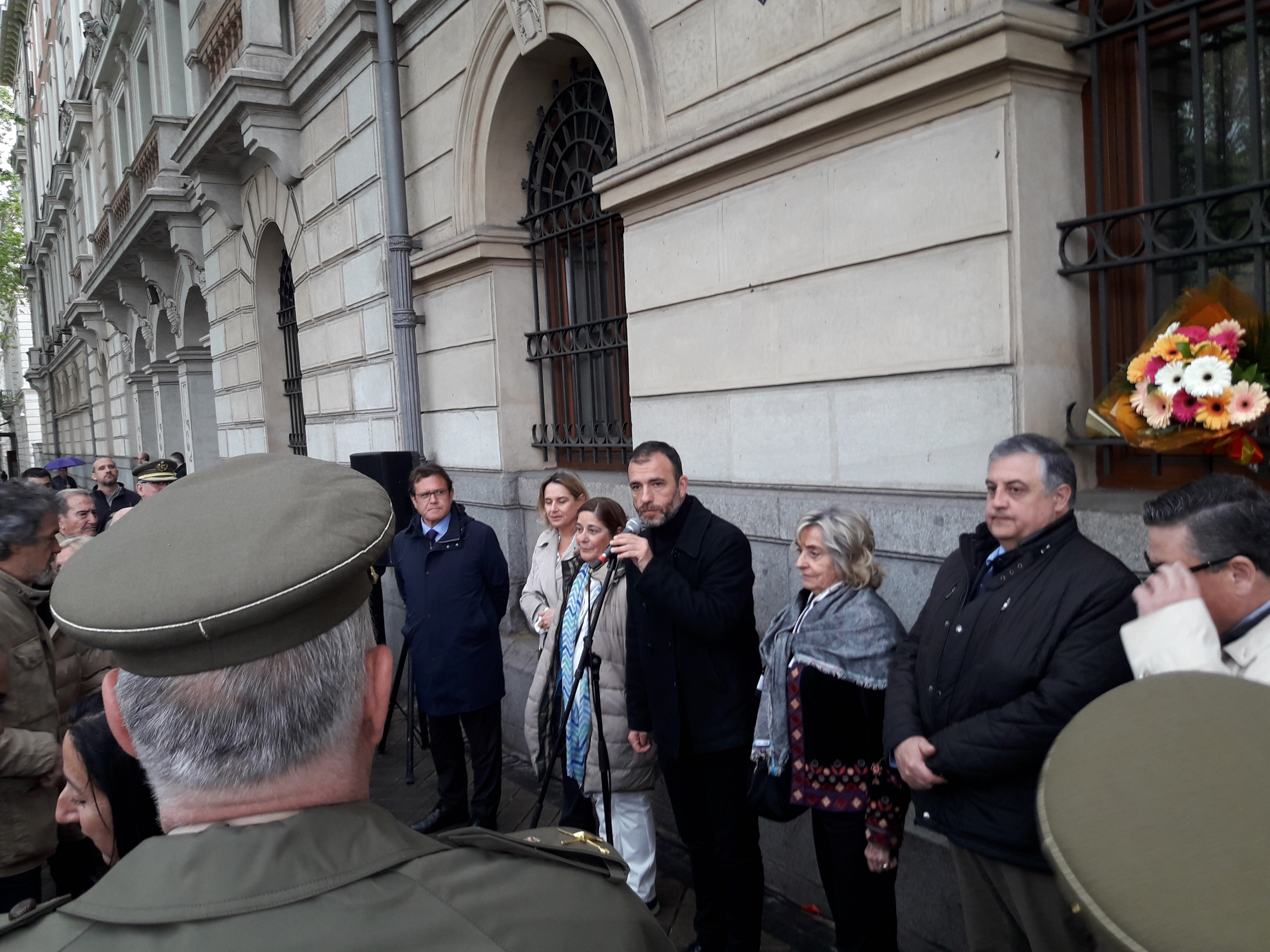Esta mañana, martes 23 de abril, se ha descubierto una placa en recuerdo de dos víctimas mortales de un atentado terrorista en el distrito de Retiro. La insignia se ha colocado en el número 2 de la avenida Ciudad de Barcelona, lugar dónde se cometió el asesinato de los militares José María Martín-Posadillo Muñiz e Ignacio Julio Barangua Arbués por la organización terrorista ETA.