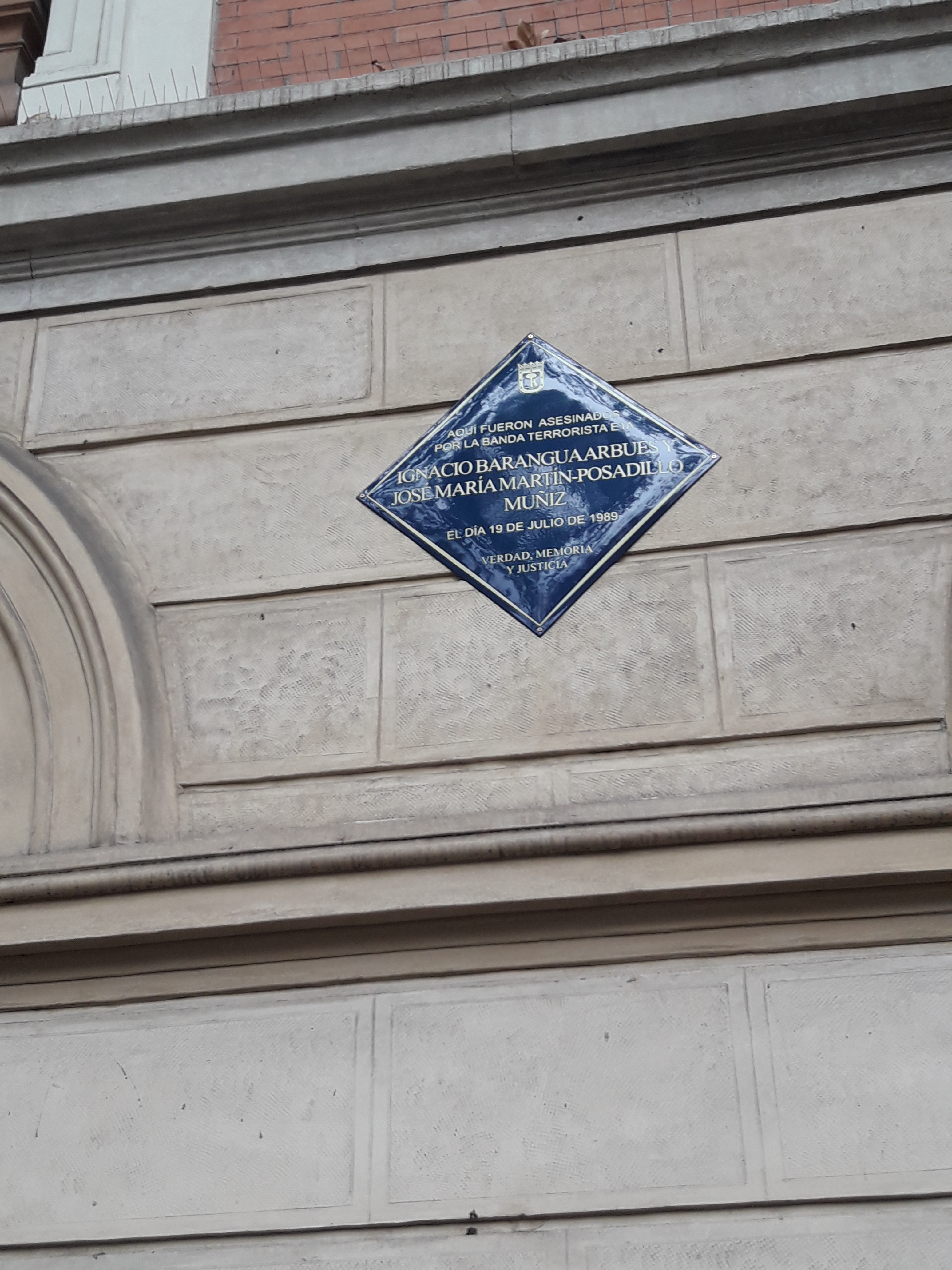 La instalación de la placa responde al cumplimiento del Acuerdo adoptado por el Pleno municipal el 28 de mayo de 2014, conforme al cual se colocarán placas conmemorativas en cada lugar de la ciudad de Madrid donde se produjeron atentados terroristas con resultado de muerte.