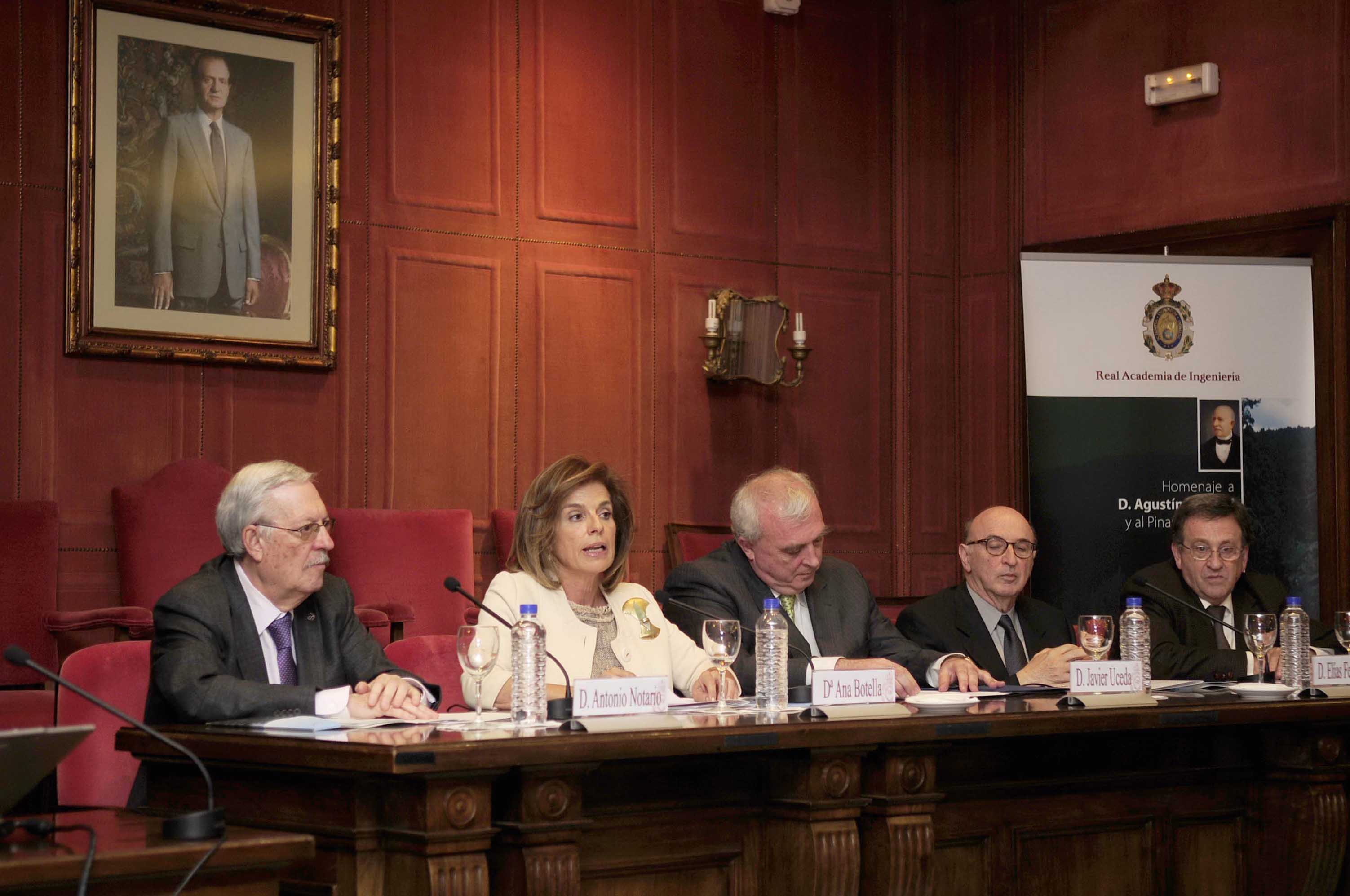 La alcaldesa, Ana Botella, durante el homenaje a Agustín Pascual, impulsor de la Escuela de Montes