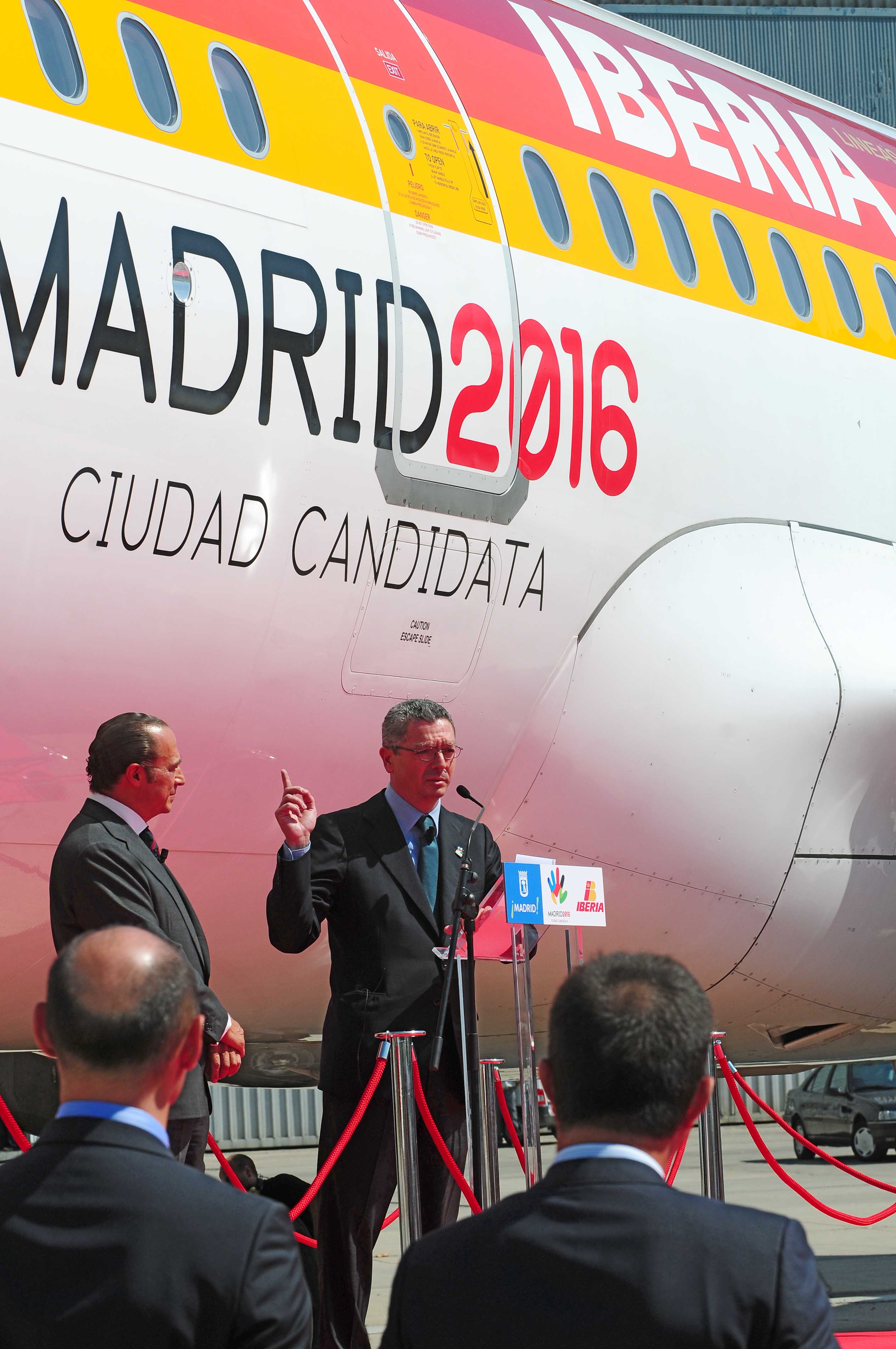Este Airbus 321, declaró Alberto Ruiz-Gallardón durante la presentación del avión, "levantará el vuelo el 30 de septiembre y regresará, espero, con la designación de Madrid como sede olímpica y paralímpica, el sábado 3 de octubre". La delegación de Madrid 2016 partirá, aseguró el alcalde, "con ilusión, con la confianza que inspira el trabajo bien hecho y con la seguridad de que podemos ofrecer los mejores Juegos nunca celebrados, después de habernos apoyado en aquellos que, como Iberia y otras empresas, han hecho de la excelencia su primera seña de identidad, y que incluso en estos momentos de dificultad económica mantienen su compromiso con la sociedad".