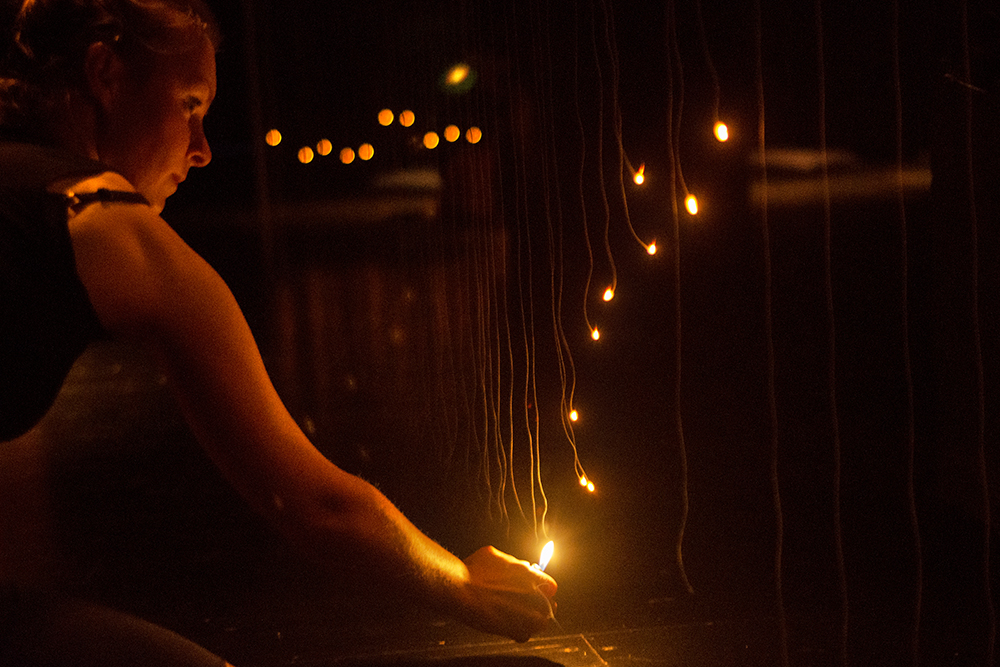 Considerado unos de los nuevos talentos en las artes de vanguardia portuguesas, André Uerba estrena en Naves Matadero su última producción que hará que se pare el tiempo en la sala de teatro. En Burn Time, cientos de delicados hilos de algodón, formando redes de esculturas, marcan el latido de la obra. Los performers prenden fuego a estos hilos, uno a uno, convirtiendo el espacio en un firmamento efímero, una invertida lluvia de estrellas a cámara lenta que se desvanece y que evidencia la importancia del instante.