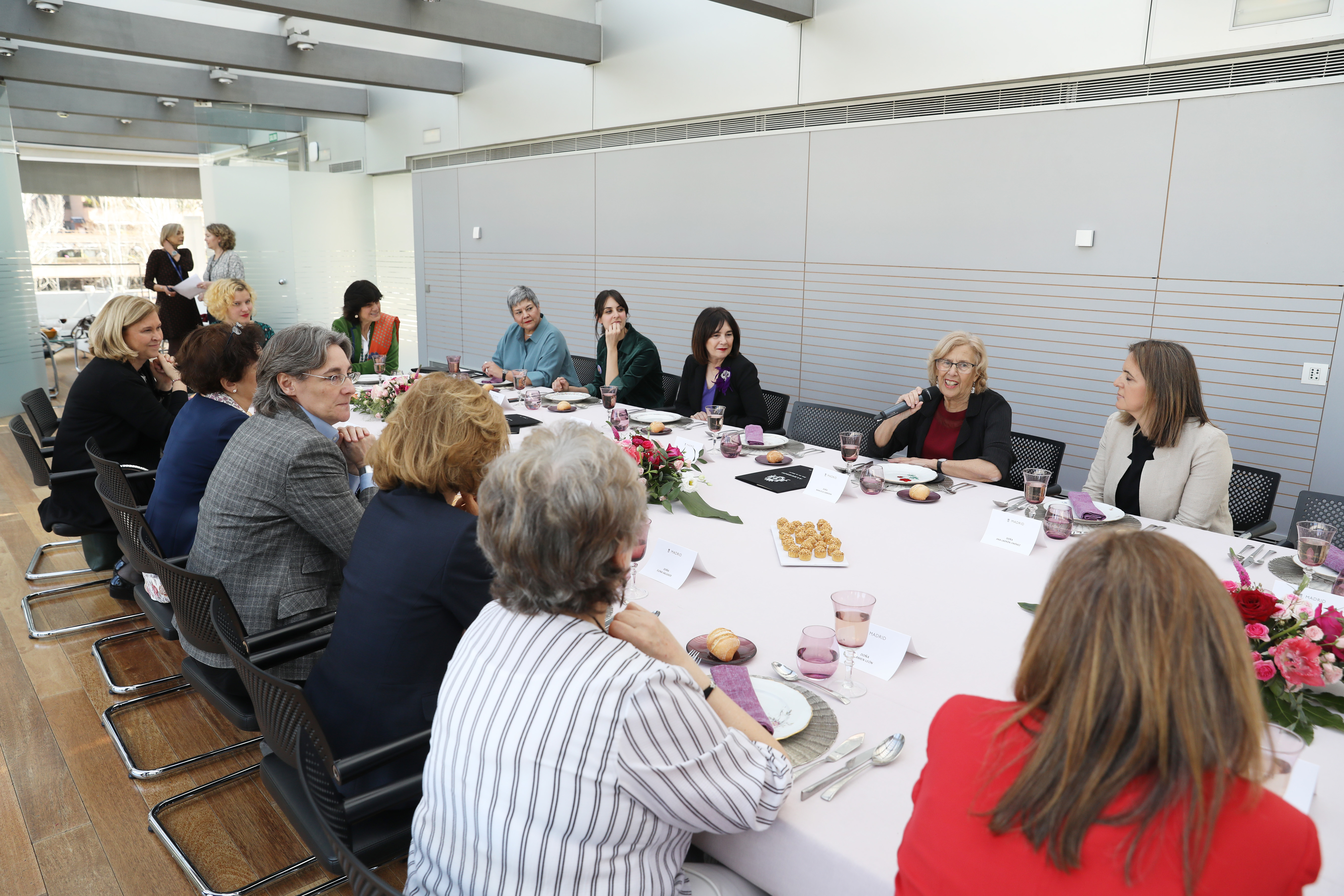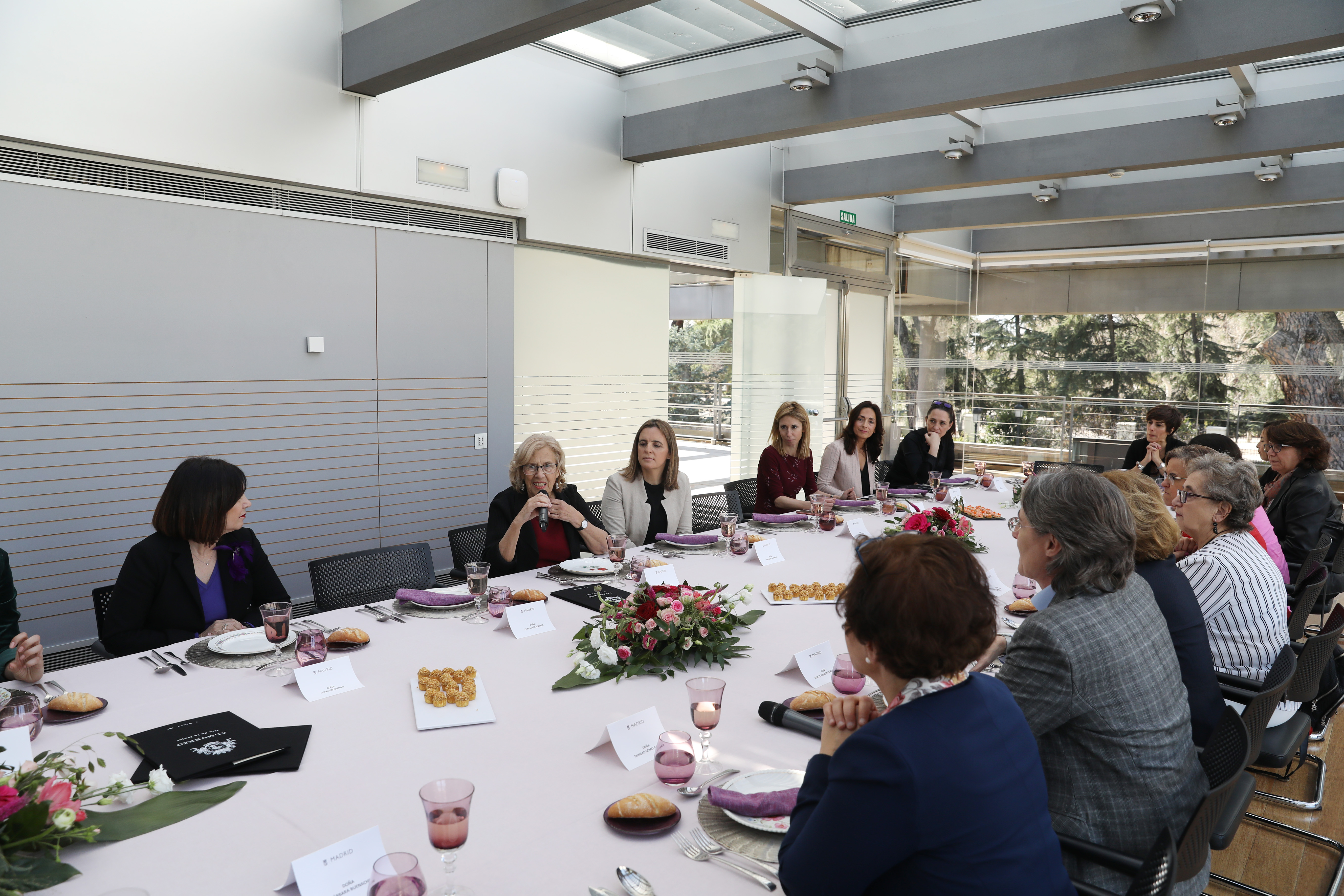 Dieciocho mujeres con una reseñable trayectoria empresarial han compartido hoy mesa con la alcaldesa de Madrid, Manuela Carmena; la delegada de Equidad, Derechos Sociales y Empleo, Marta Higueras; las portavoces de los distintos grupos políticos municipales, Rita Maestre (AM), Beatriz Elorriaga, en representación del PP; Puri Causapié (PSOE) y Silvia Saavedra en nombre de Ciudadanos, y la directora de Comercio y Emprendimiento, Concha Díaz de Villegas.