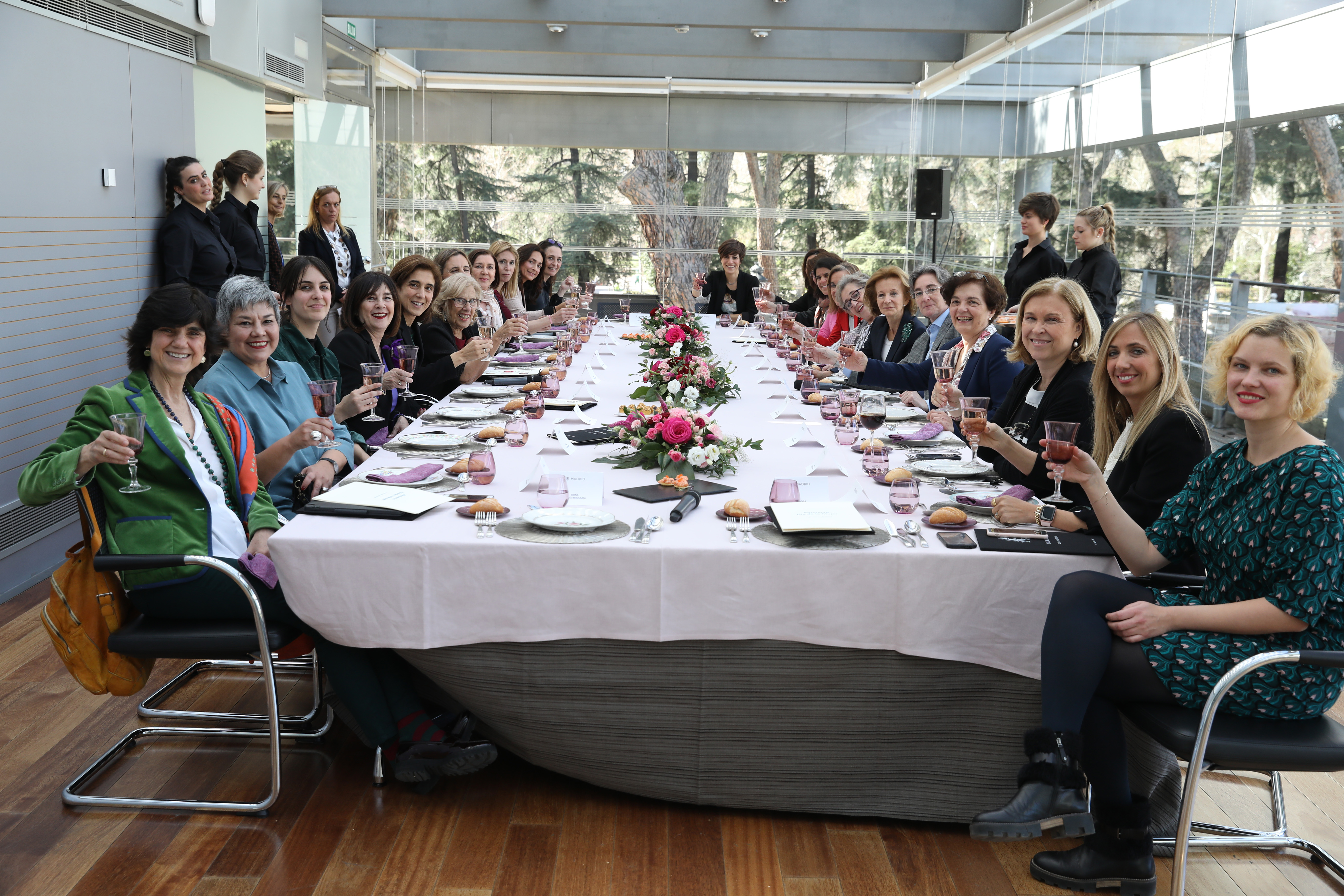 Han compartido almuerzo y coloquio en Cecilio Rodríguez: Pilar López, presidenta de Microsoft España; Alina Zarekaite, encargada de la librería Mujeres; Ana Ladrón, al frente de la Antigua Casa Crespo, dedicada a la venta de alpargatas artesanas en un establecimiento centenario de Madrid; Ana Sáenz de Miera, vicepresidenta de la Fundación Cotec; Bárbara Buenache, presidenta de la Asociación de Cocineros y Reposteros de Madrid; la periodista Begoña Tormo; Belén Martí Junco, directora de CharHadas.com, startup de encuentro y apoyo entre madres en la red; Carmen León, una de las lideresas de los centros de mayores de Villaverde; Charo Izquierdo, directora de la pasarela Mercedes Benz Fashion Week; Elena Salgado, presidenta de la Asociación Española de Empresas de Consultoría; Helena Díez-Fuentes, abogada, periodista y emprendedora; Irene Aláez, fundadora de Una más Una, empresa de gestión y producción cultural; Lourdes Reyzábal, promotora de la Fundación Raíces, dedicada a defender y a dar voz a los niños y niñas que ven vulnerados sus derechos por parte de la Administración; Mandi Ciriza, Senior Vice President Lifestyle Channels de AMC Networks Southern Europe y Latinoamérica; Marcela San Martín, vicepresidenta de la Asociación de Mujeres de la Industria de la Música (MIM); María Benjumea, fundadora y CEO de Spain Startup; Mercedes Wullich, fundadora de MujeresyCía.com, y Trinidad Gómez, directora de Sertina, tienda online de productos frescos y elaborados.