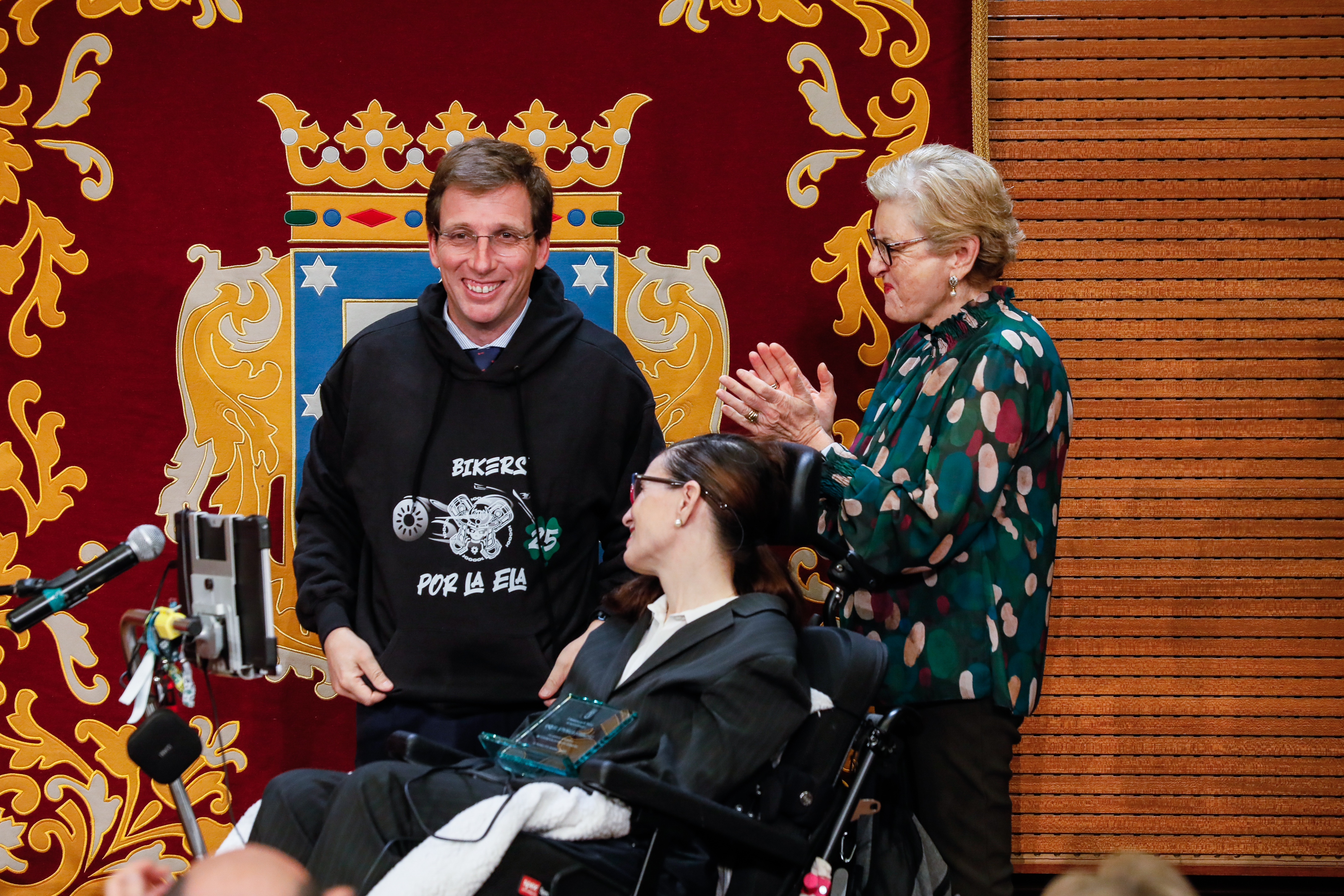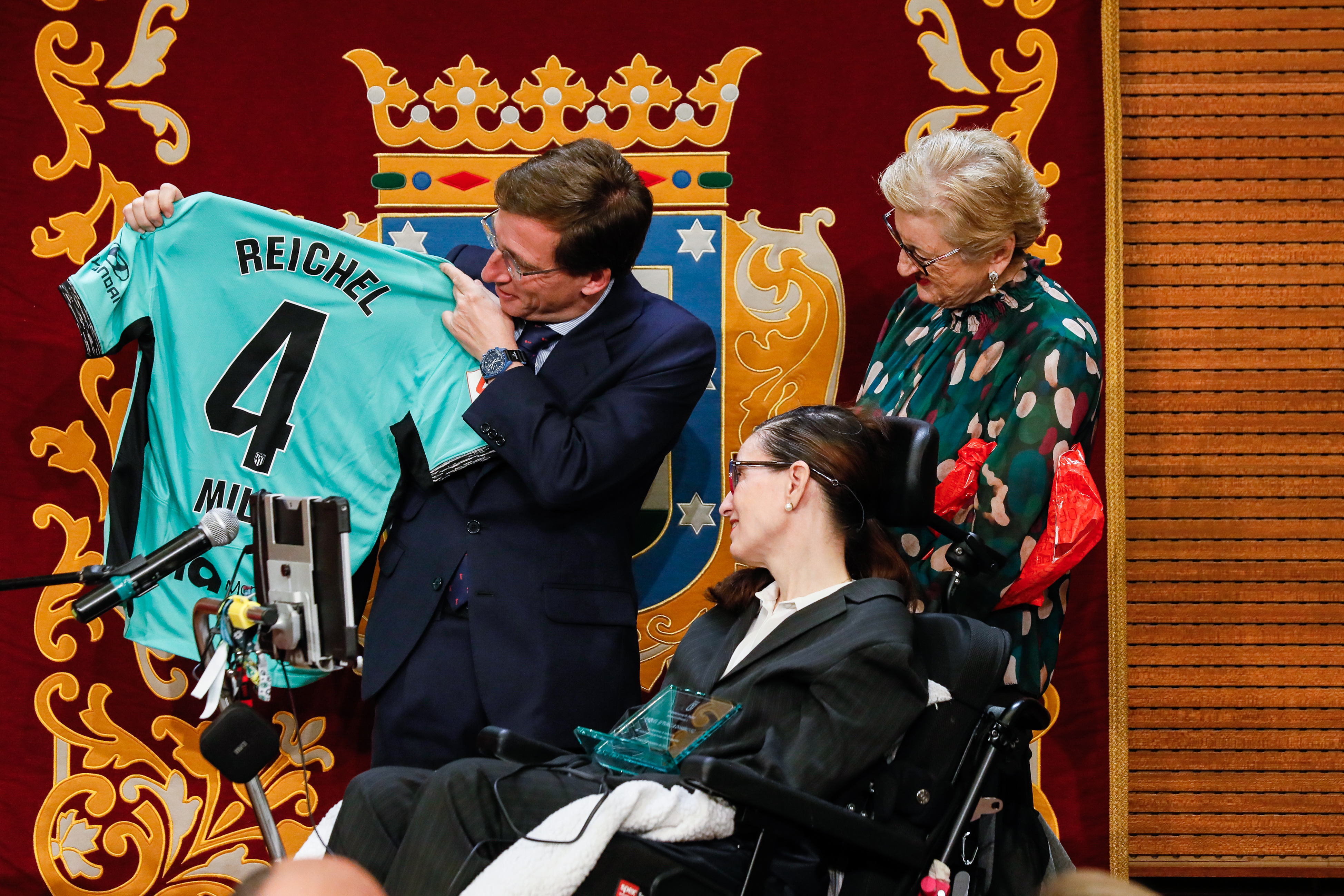 “Raquel sabe que la vida se juega partido a partido” ha dicho Almeida de Raquel Estúñiga, que también ha sido galardonada hoy por su lucha personal y su labor de concienciación a través de su podcast ‘Hable con ELA’, que protagoniza junto a Tomás Peinado, y en el que busca visibilizar la Esclerosis Lateral Amiotrófica que le fue diagnosticada hace cinco años y que, en su caso, lleva aparejada una discapacidad del 85 %. Desde una mirada positiva y desenfadada, en sus charlas con pacientes de esta enfermedad con la que conviven más de 4.000 personas en España demuestra que “si la ELA está viva, los que la padecen lo están mucho más”.
