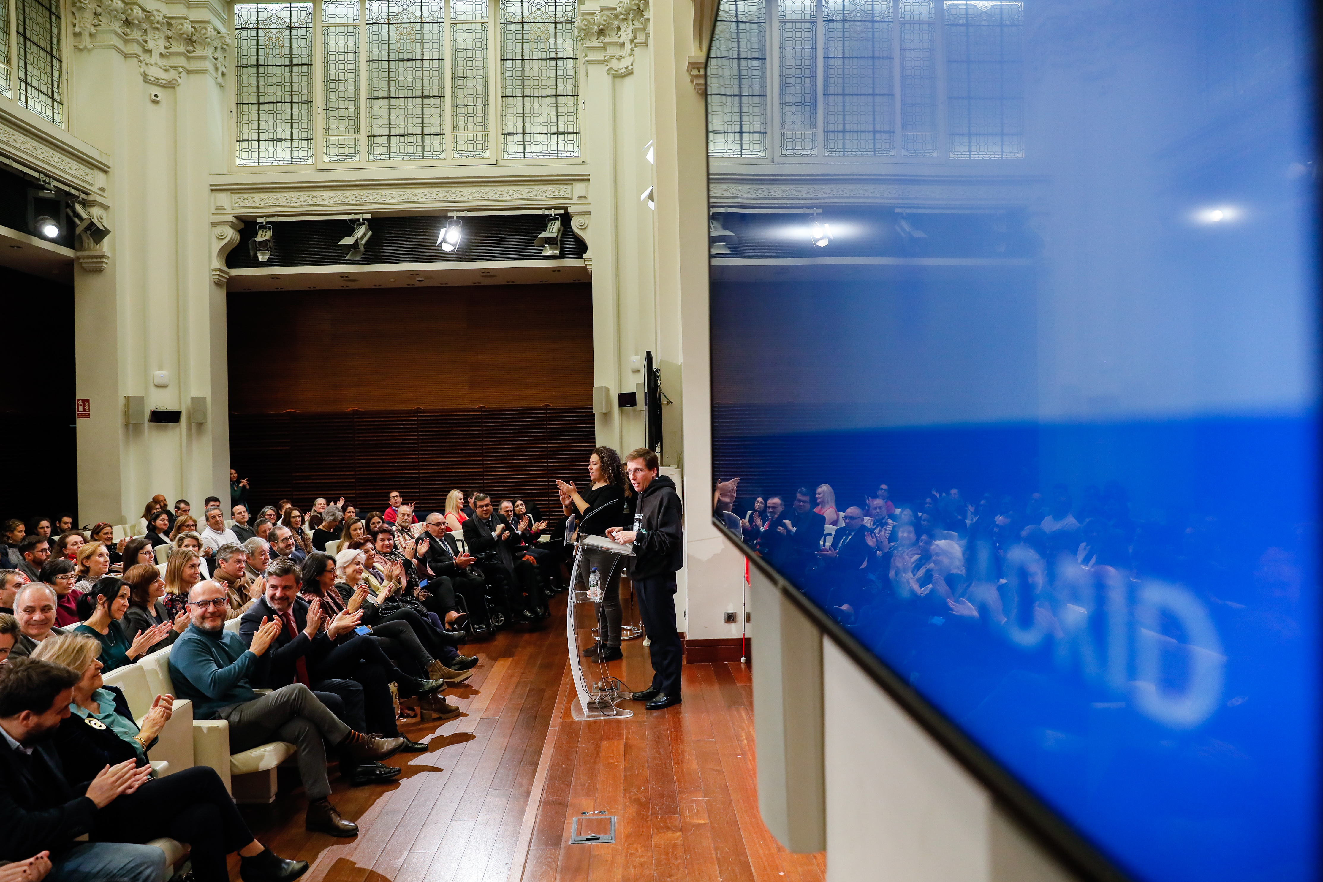 El Ayuntamiento de Madrid ha celebrado hoy el acto institucional por el Día Internacional de las Personas con Discapacidad, que se conmemora cada 3 de diciembre desde que fuera declarado por la Asamblea General de Naciones Unidas en 1992. El alcalde, José Luis Martínez-Almeida, ha presidido el acto, “una conmemoración que nos ha agrandado el corazón” ha dicho, en el que se ha reconocido a Madrid Talento, por impulsar la primera promoción de funcionarios con discapacidad intelectual, y a Raquel Estúñiga, por visibilizar la Esclerosis Lateral Amiotrófica (ELA) en su podcast. En el reconocimiento también ha estado presente el delegado de Políticas Sociales, Familia e Igualdad, José Fernández; el concejal de Barajas, Juan Peña, y representantes de los grupos municipales.