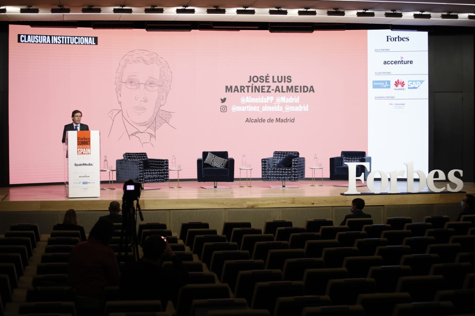 El alcalde de Madrid, José Luis Martínez-Almeida, ha clausurado hoy la tercera edición de Forbes Summit Reinventing Spain, la jornada organizada por la revista de negocios dedicada a analizar la situación económica y social que está atravesando el país, así como su comportamiento en el nuevo escenario marcado por la COVID-19.
