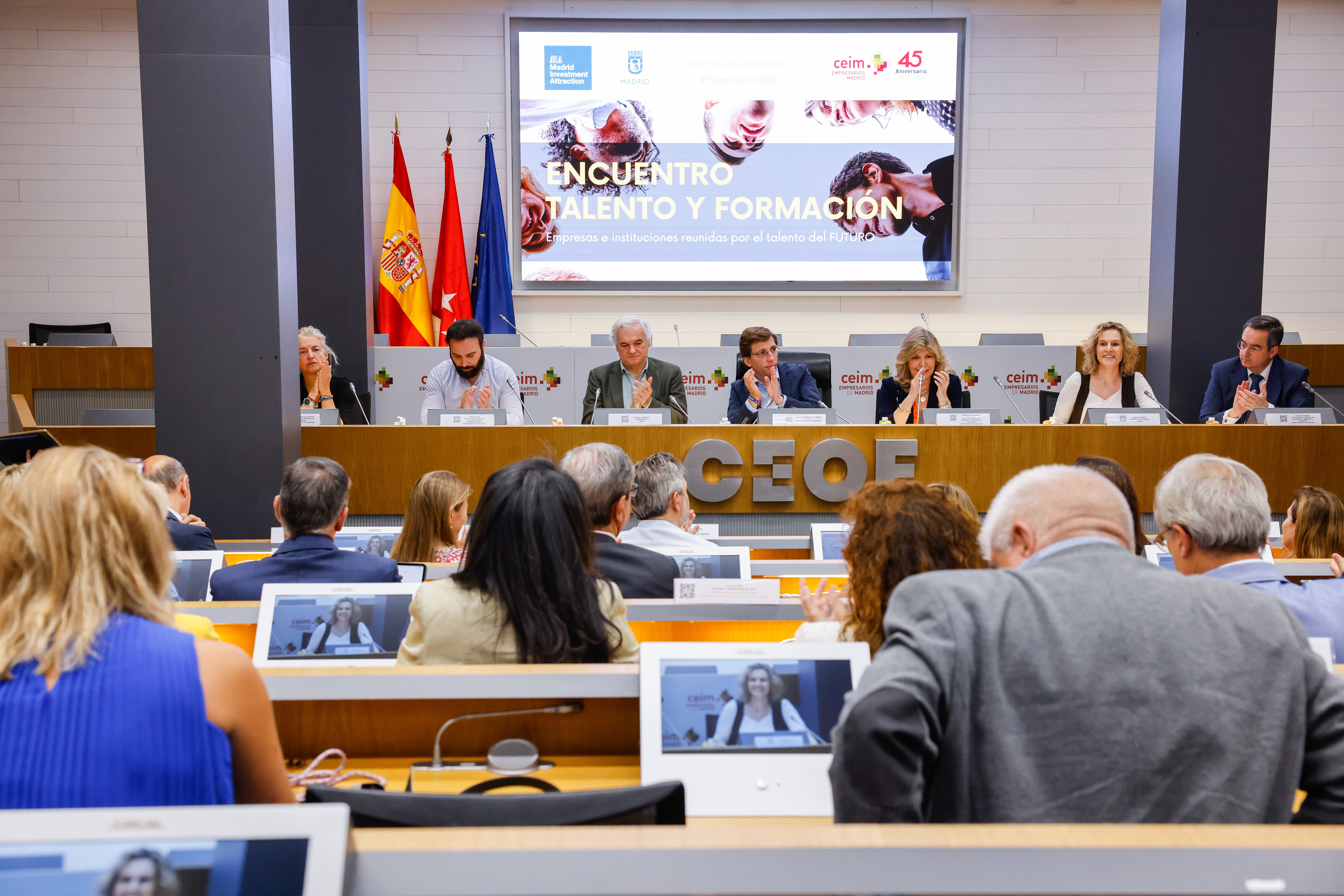 El alcalde de Madrid, José Luis Martínez-Almeida, acompañado por la delegada de Economía, Innovación y Hacienda, Engracia Hidalgo, ha participado esta mañana en un encuentro sobre talento y competitividad en las empresas, organizado por la Confederación Empresarial de Madrid (CEIM). Una reunión que ha servido para poner de manifiesto el gran momento que vive Madrid, que en los próximos años deberá consolidarse como una de las grandes capitales del mundo.