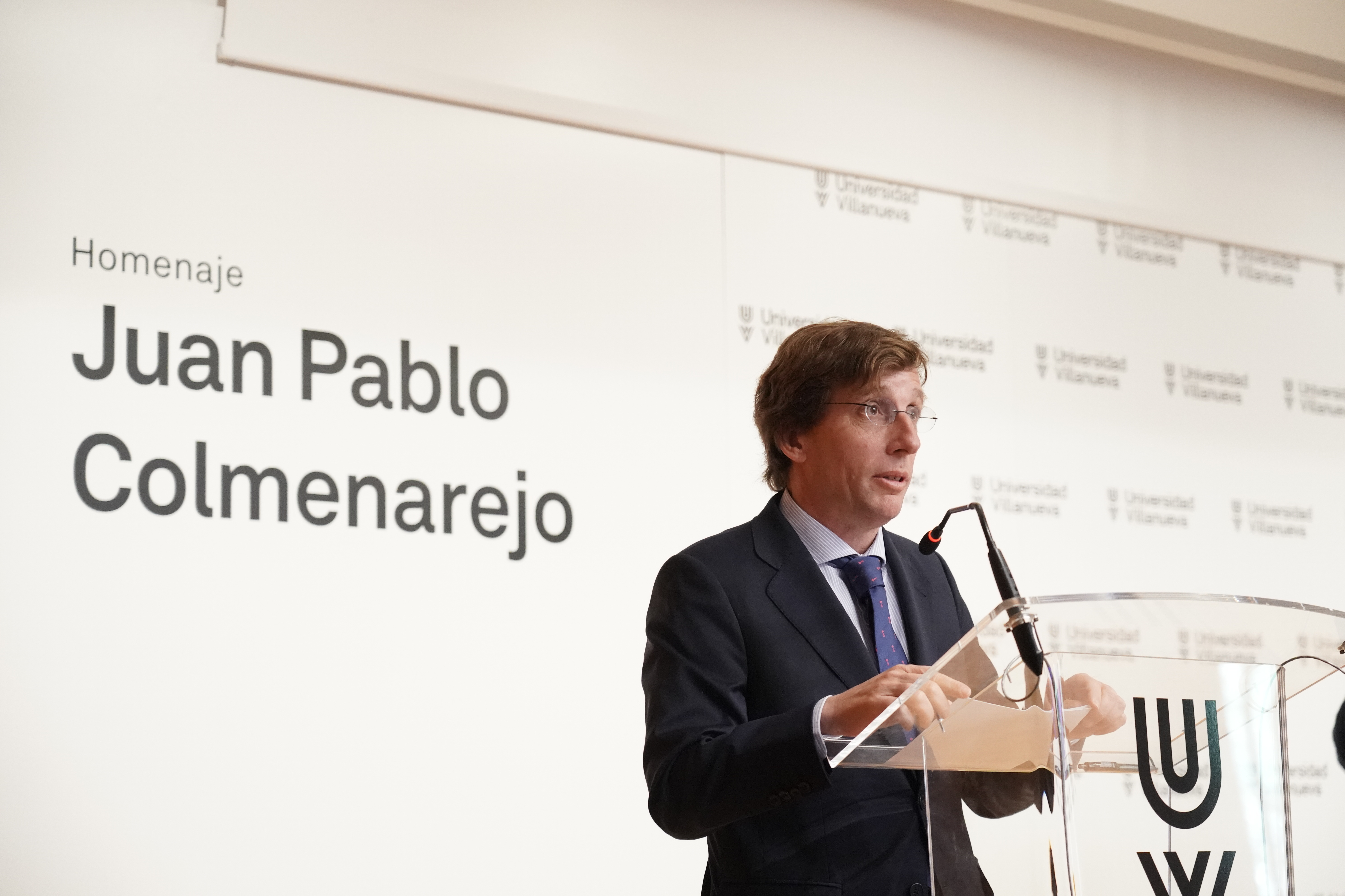 El alcalde de Madrid, José Luis Martínez-Almeida, ha participado este lunes, Día Mundial de la Radio, en el homenaje que la Universidad Villanueva ha rendido al periodista Juan Pablo Colmenarejo en el primer aniversario de su fallecimiento. El acto ha consistido en el descubrimiento de una placa con el nombre del informador que, desde ahora, denominará a los nuevos estudios de radio de la universidad en la que Colmenarejo era profesor.