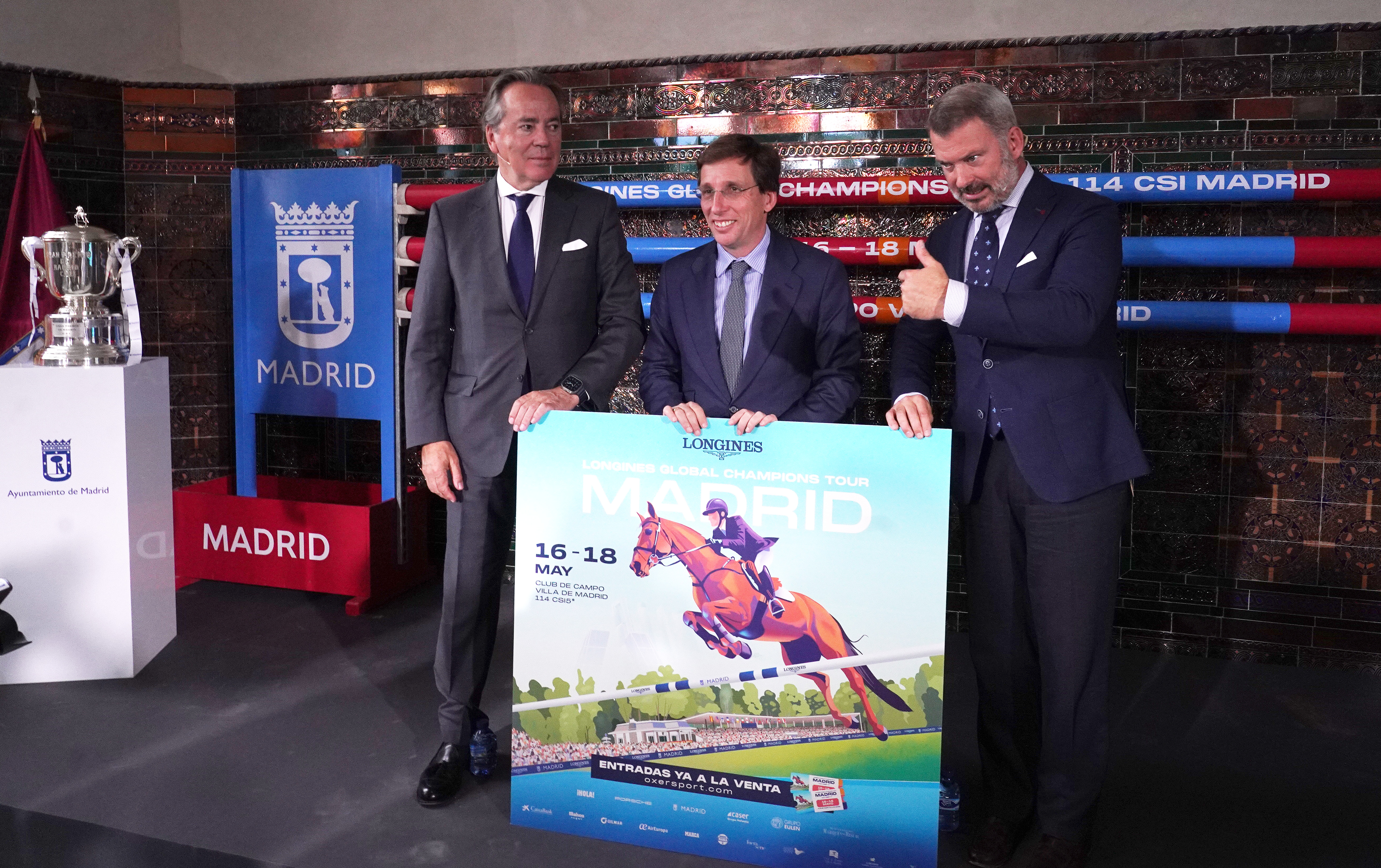 Madrid vuelve a convertirse en la capital mundial de la hípica este mes de mayo. Entre los días 16 y 18, la ciudad será la sede del Concurso de Saltos Internacional de Madrid, cuarta sede del Longines Global Champions Tour 2025, el circuito hípico más importante del mundo, que se celebrará en el Club de Campo Villa de Madrid. El alcalde de la capital, José Luis Martínez-Almeida, ha presentado esta mañana la 114ª edición de esta prueba, junto al presidente de la Real Federación Hípica Española, Javier Revuelta, y el presidente de Oxer Sport, Álvaro Arrieta.