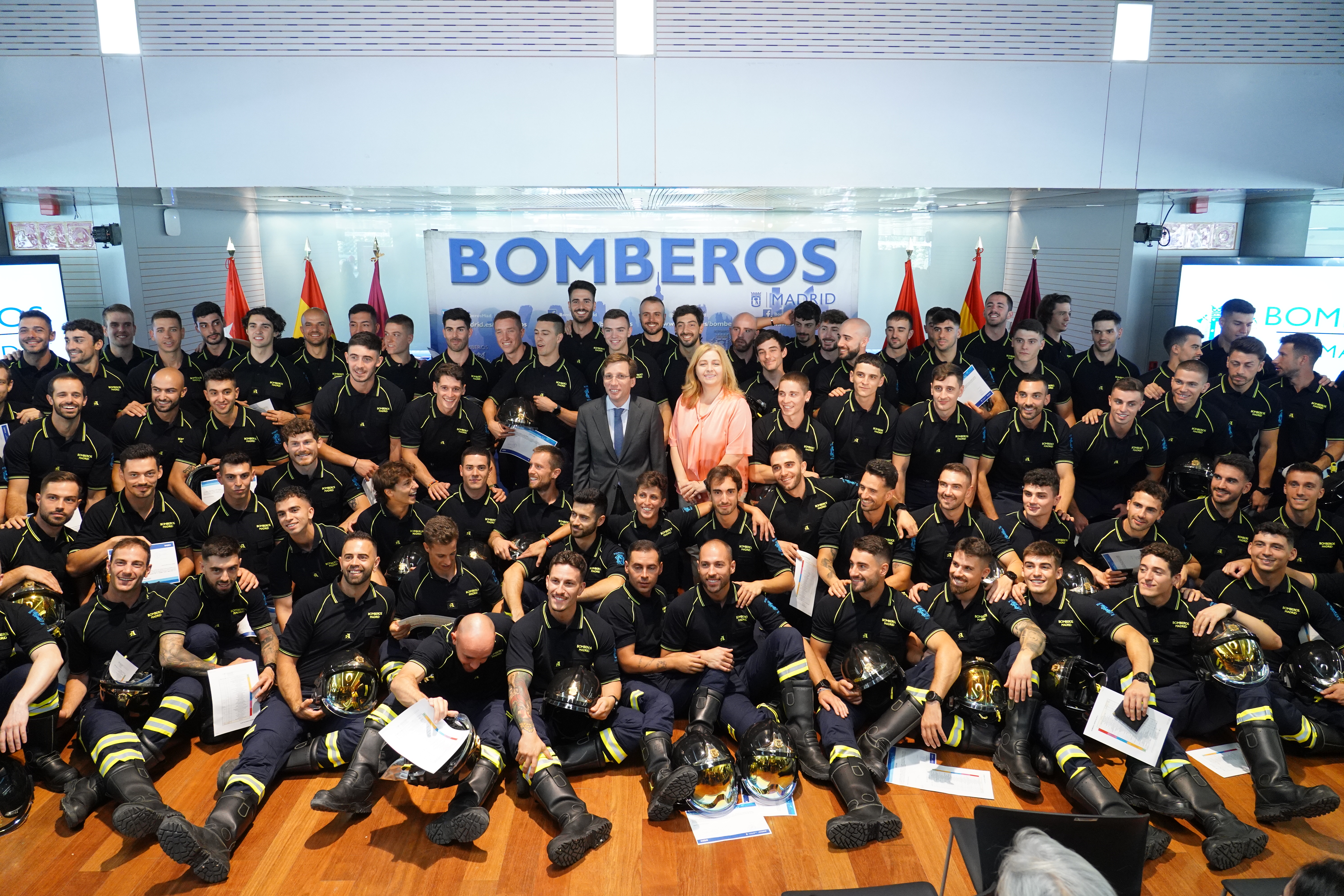 El alcalde de Madrid, José Luis Martínez-Almeida, ha dado la bienvenida hoy a los 85 nuevos bomberos especialistas del Ayuntamiento que componen la nueva promoción del cuerpo y que hoy han recibido su diploma y placa que acreditan el final de su proceso selectivo. Acompañado de la vicealcaldesa, delegada de Seguridad y Emergencias y portavoz municipal, Inmaculada Sanz, así como de los mandos del Cuerpo de Bomberos y de las familias de los nuevos funcionarios municipales, Almeida ha animado a esta nueva promoción a continuar trabajando “con sacrificio, esfuerzo e ilusión” como han hecho sus predecesores, “porque tenéis un legado impresionante y la responsabilidad de acrecentarlo”.