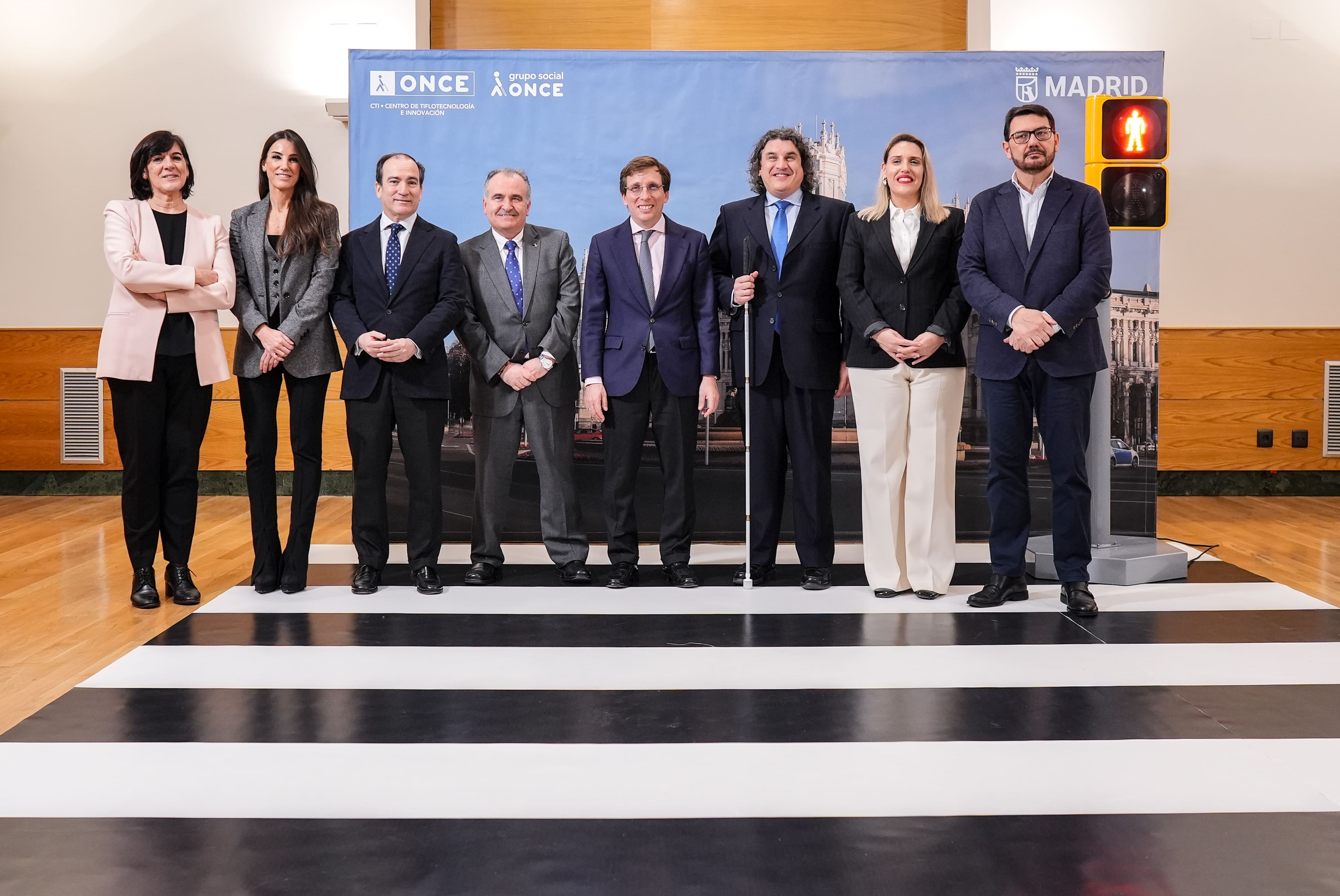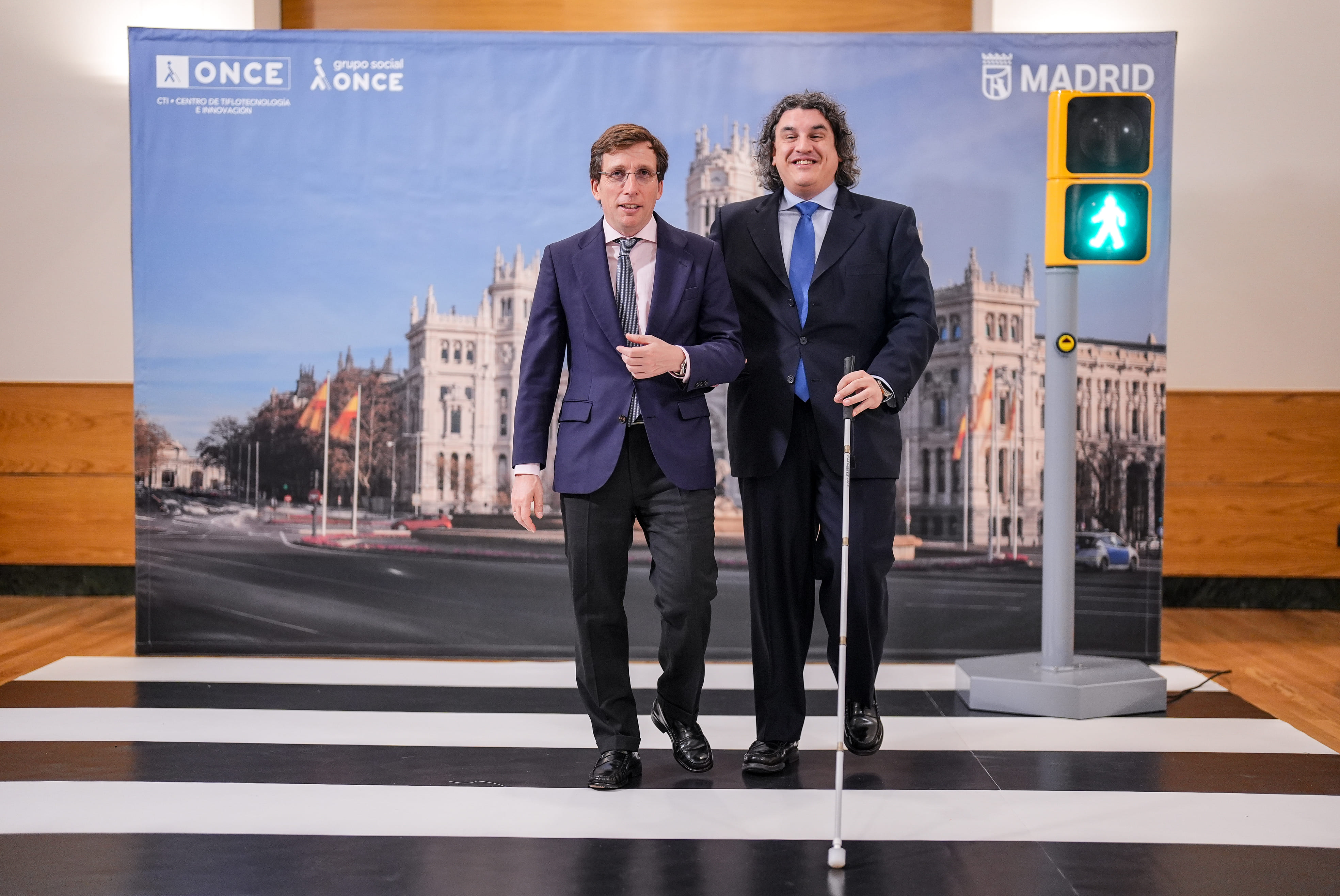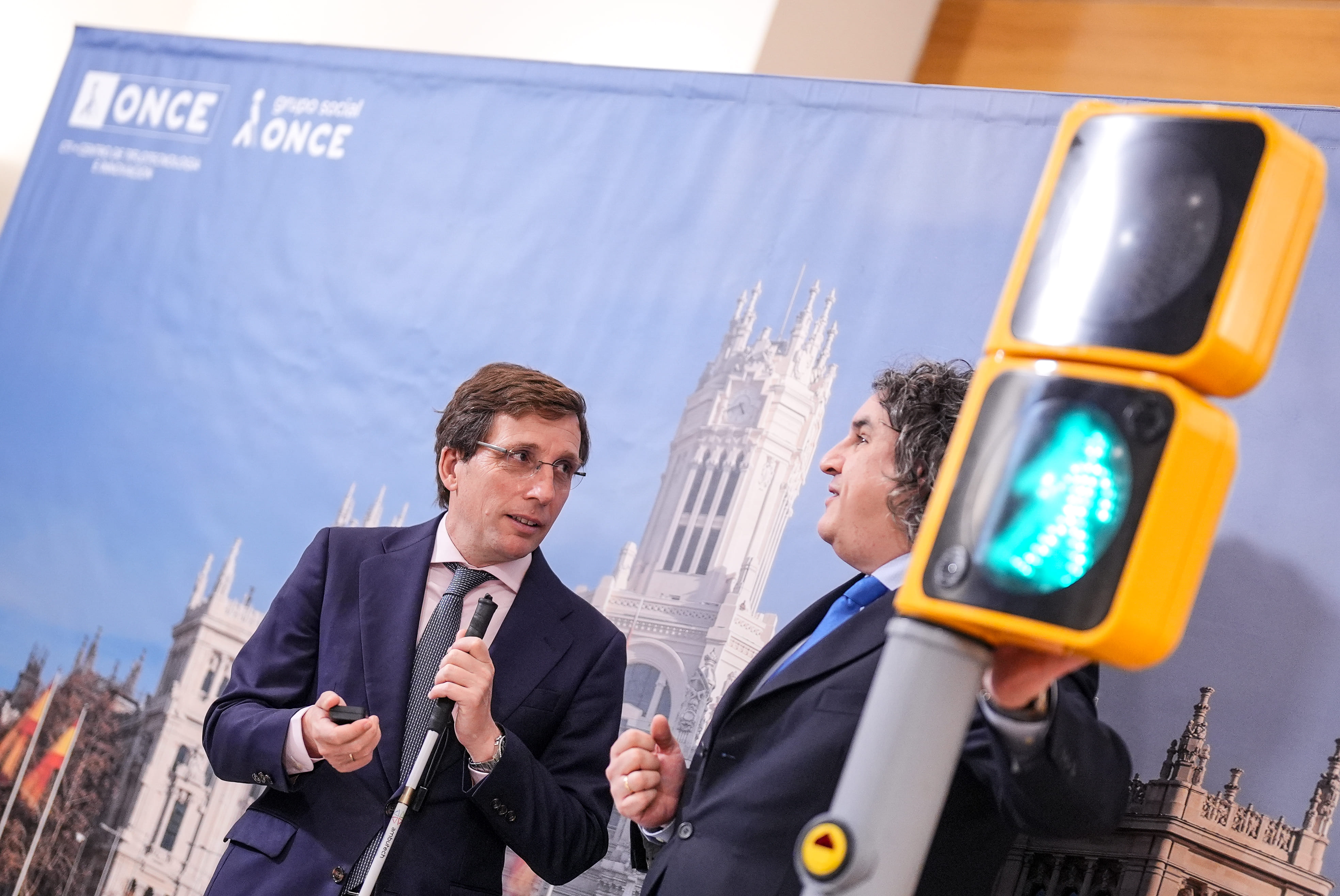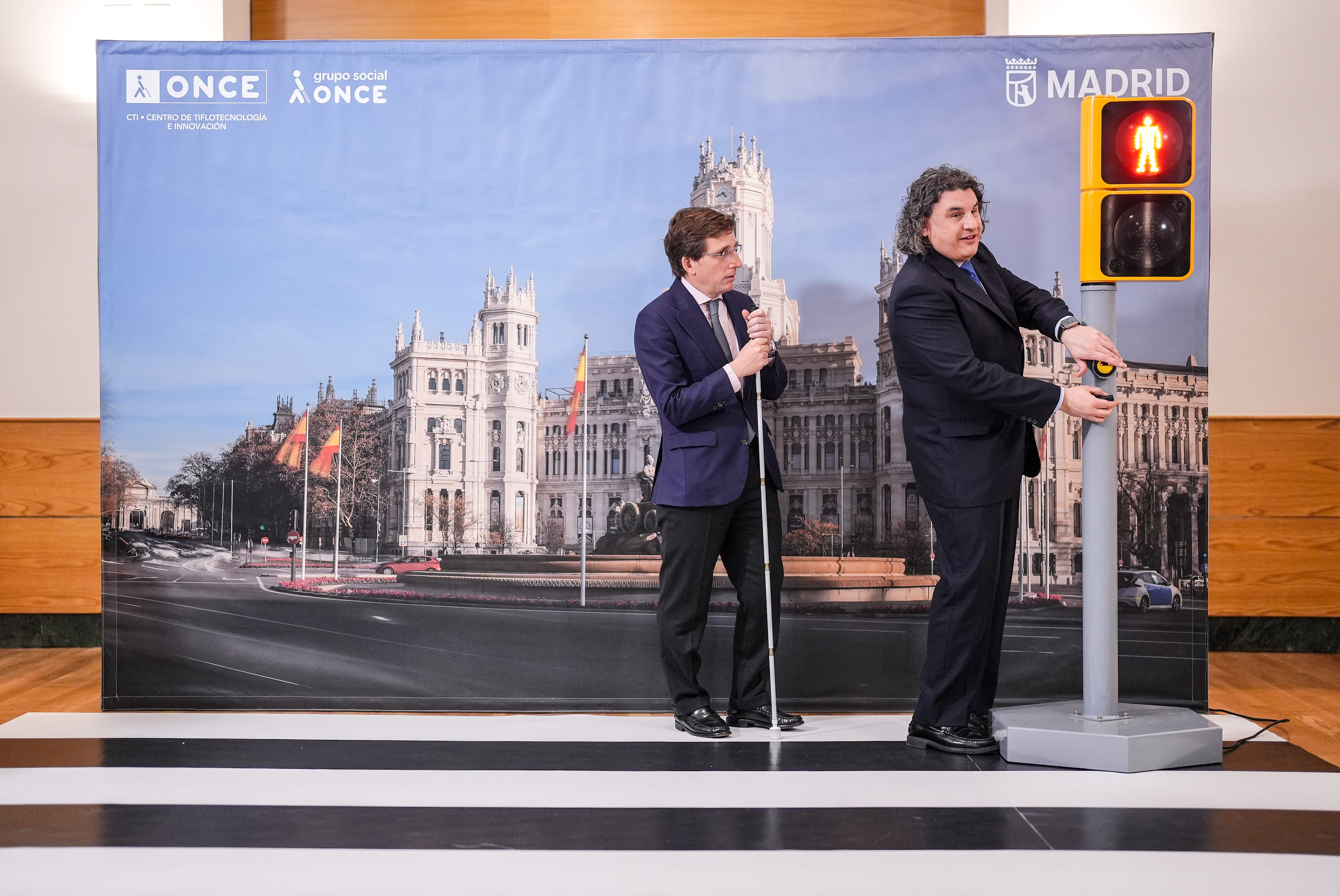 Entre las mejoras que el Ayuntamiento de Madrid está realizando en la ciudad para garantizar una movilidad más accesible y segura para invidentes o personas con baja visibilidad, Almeida ha adelantado que, a lo largo de este año, se implantarán 450 avisadores acústicos más, en algunos casos, para sustituir los más antiguos. Hay más de 650 personas afiliadas de la ONCE que disponen de mando a distancia para su activación.