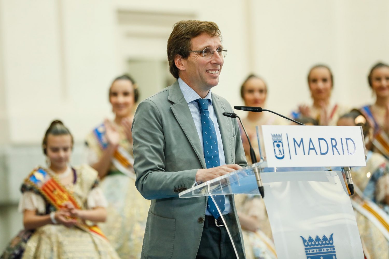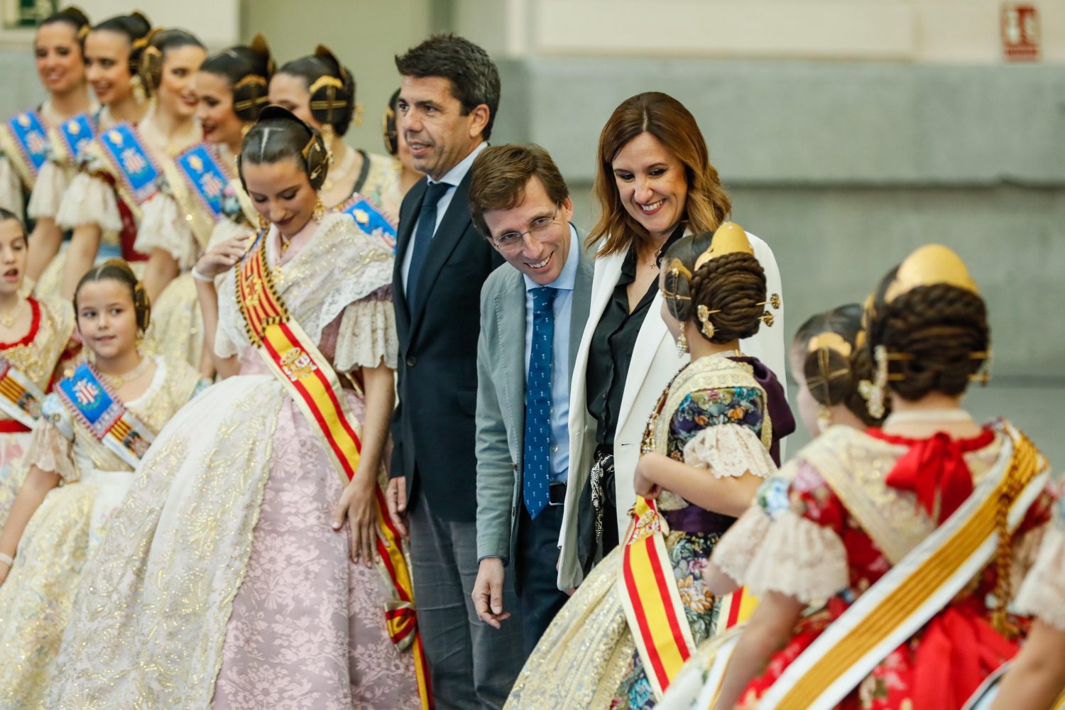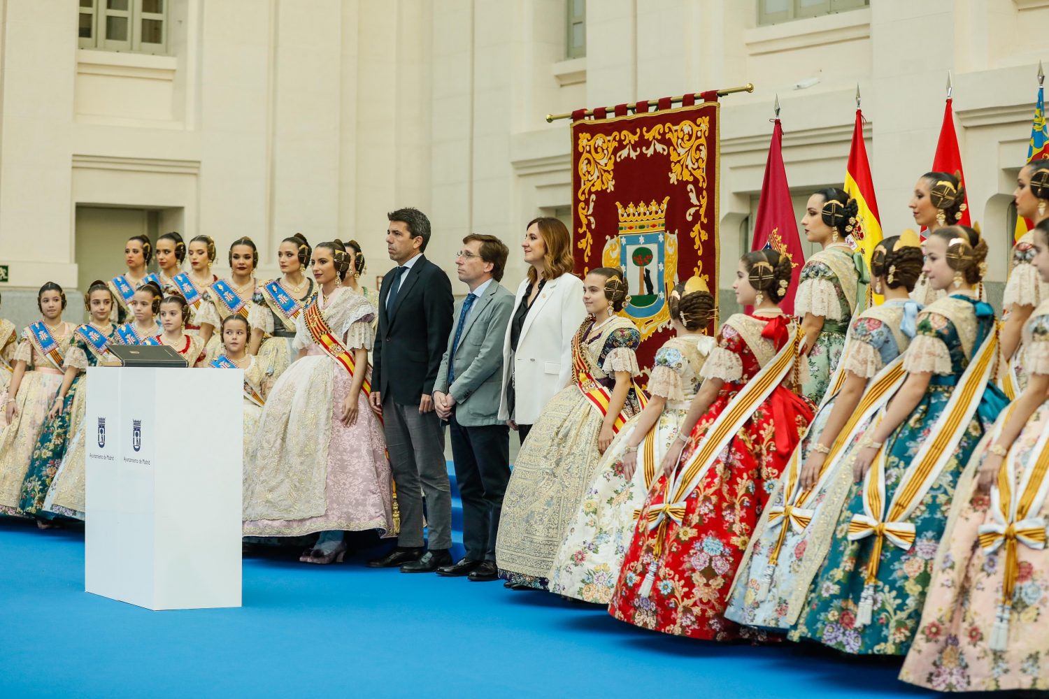 El alcalde de Madrid, José Luis Martínez-Almeida, ha recibido esta mañana en el Palacio de Cibeles al presidente de la Generalitat Valenciana, Carlos Mazón, junto a la alcaldesa de Valencia, María José Catalá, y las falleras mayores de Valencia, María Estela Arlandis y Marina García, acompañadas de sus respectivas cortes de honor, en un acto con motivo de la Mascletá que ha organizado el Ayuntamiento de Madrid como preámbulo de las Fallas de 2024, que comenzarán el próximo 25 de febrero.