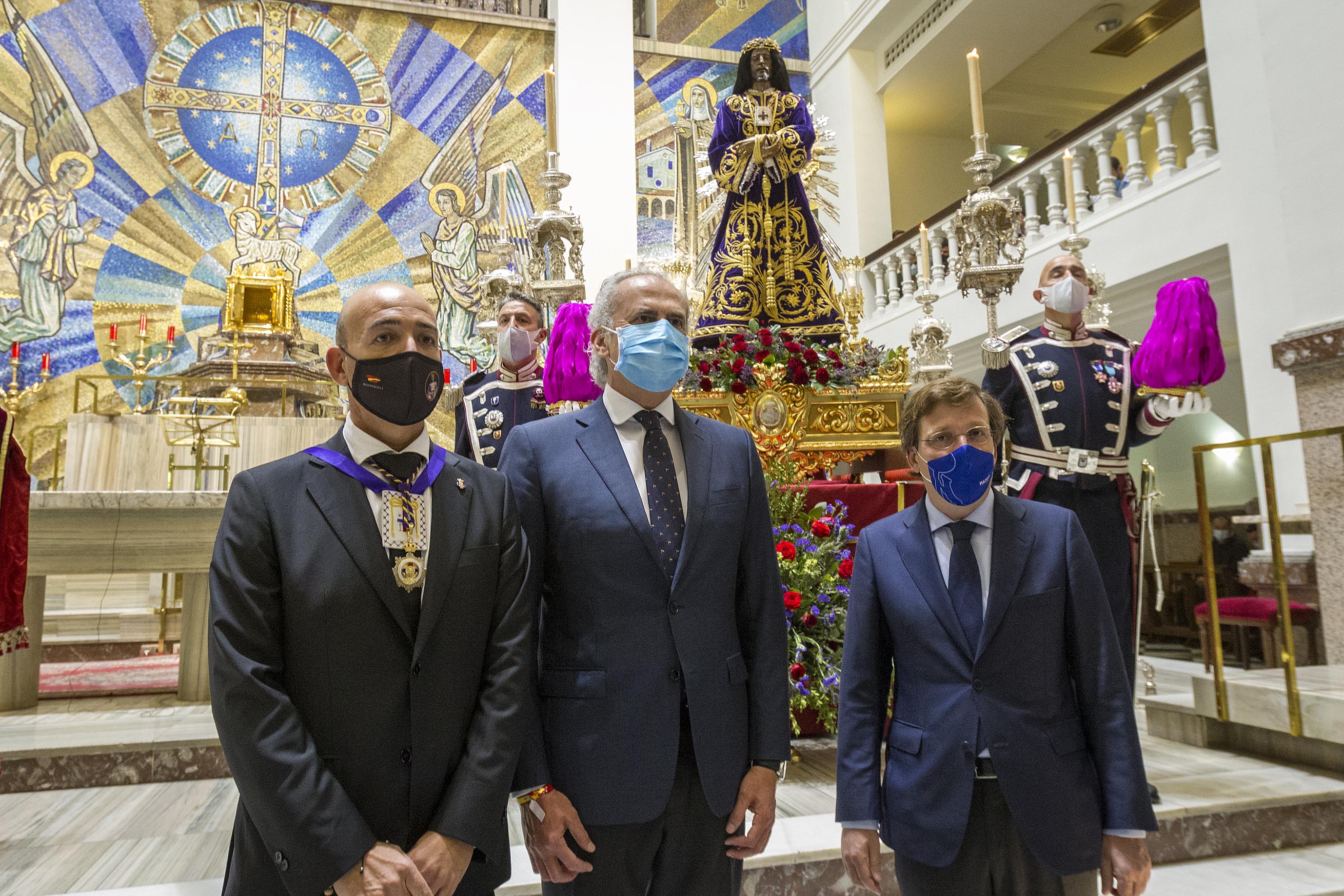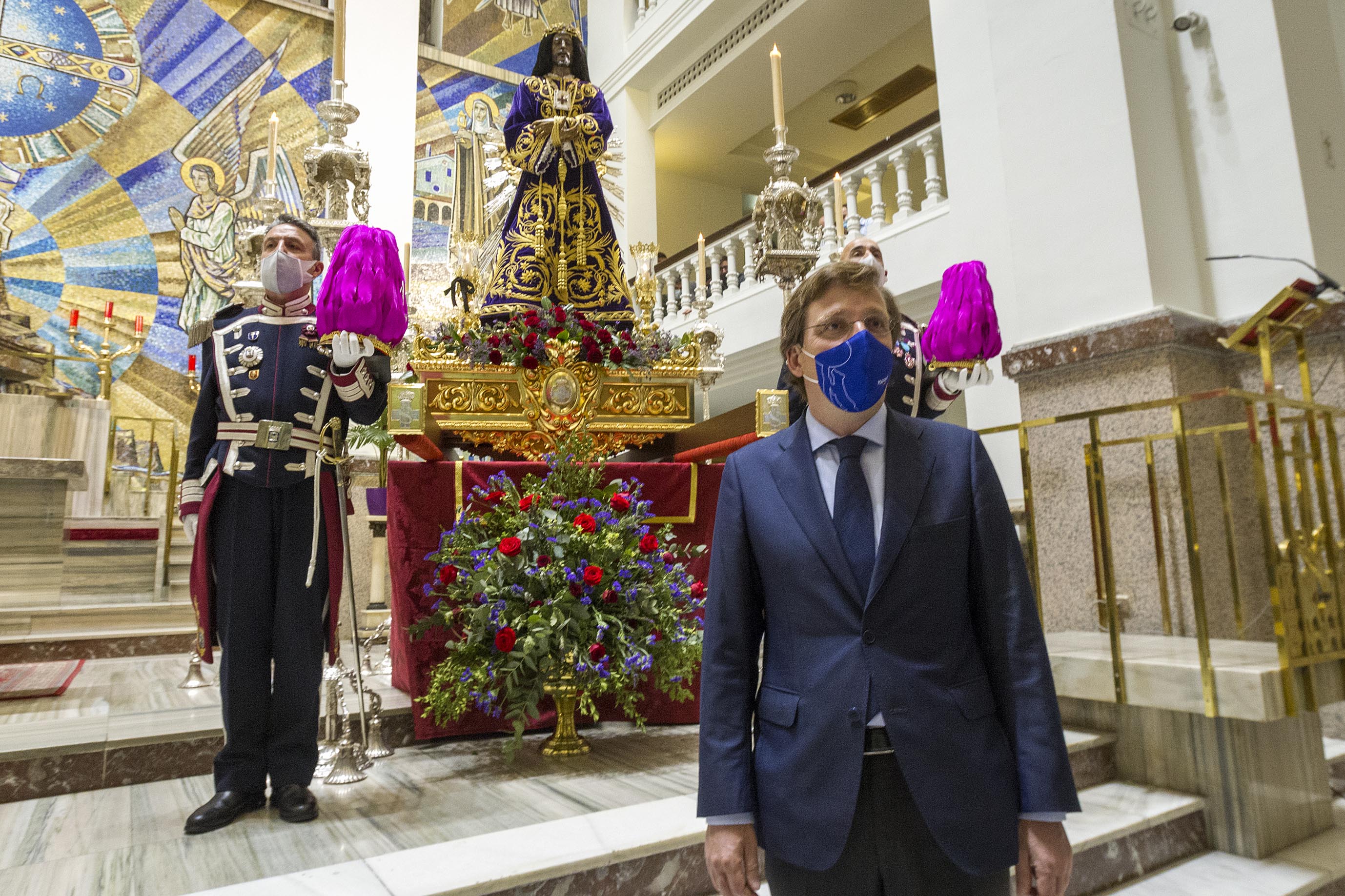 El alcalde de Madrid, José Luis Martínez-Almeida, junto con varios concejales del Ayuntamiento, ha asistido este mediodía a la predicación del Sermón de las Siete Palabras oficiada por el cardenal arzobispo de Madrid, Carlos Osoro, en la basílica de Nuestro Padre Jesús de Medinaceli con motivo de la celebración de la Semana Santa./