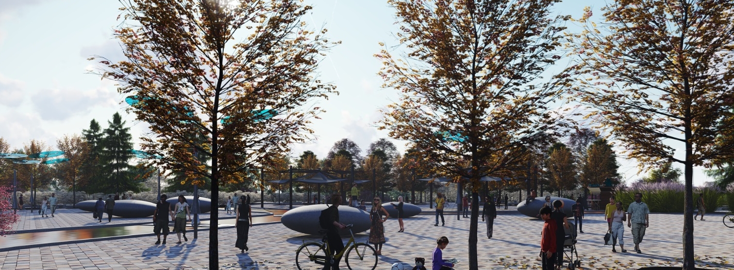 En la zona urbana estarán la plaza del Agua, el Bosque de los Sentidos y el Árbol del Agua. La plaza del Agua será la única pavimentada, con criterios de drenaje urbano sostenible y se podrá utilizar como punto de reunión para diversas actividades o proyección de cine al aire libre.