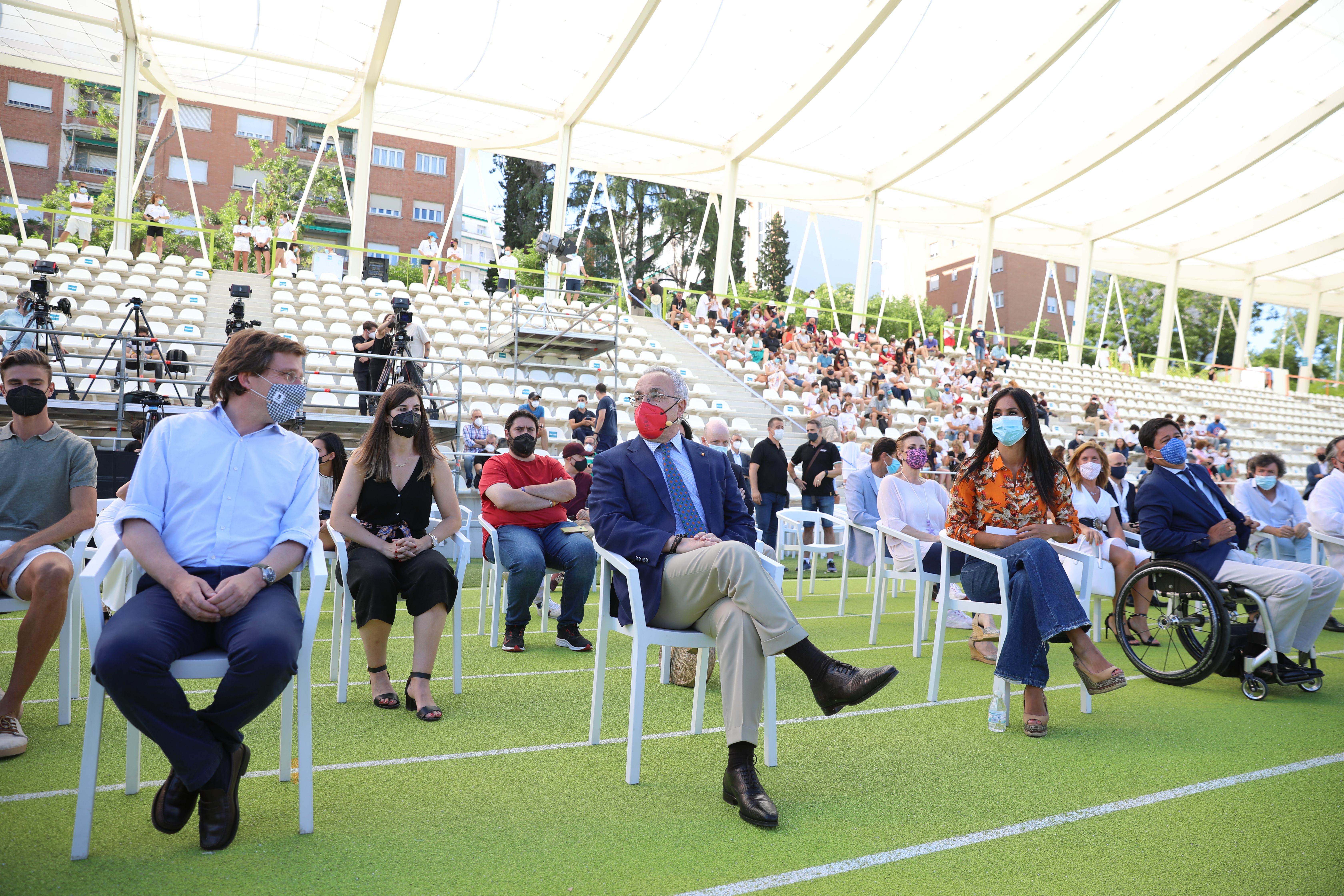 El alcalde de Madrid, José Luis Martínez-Almeida, y la vicealcaldesa, Begoña Villacís, junto con la delegada de Cultura, Turismo y Deporte, Andrea Levy, y la concejala delegada de Deporte, Sofía Miranda, han participado esta tarde en el acto de despedida a los deportistas madrileños que van a competir en los próximos Juegos Olímpicos y Paralímpicos de Tokio.