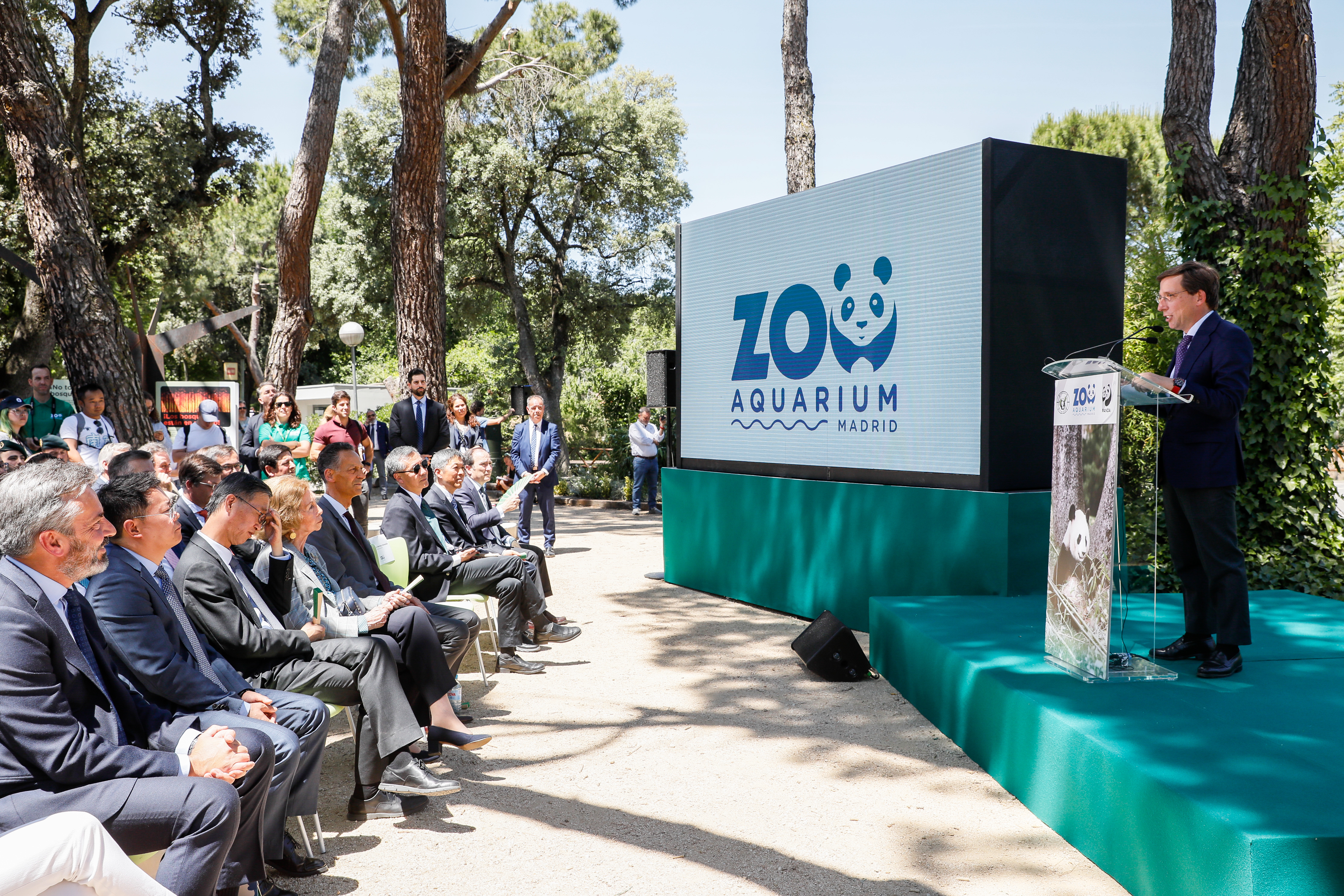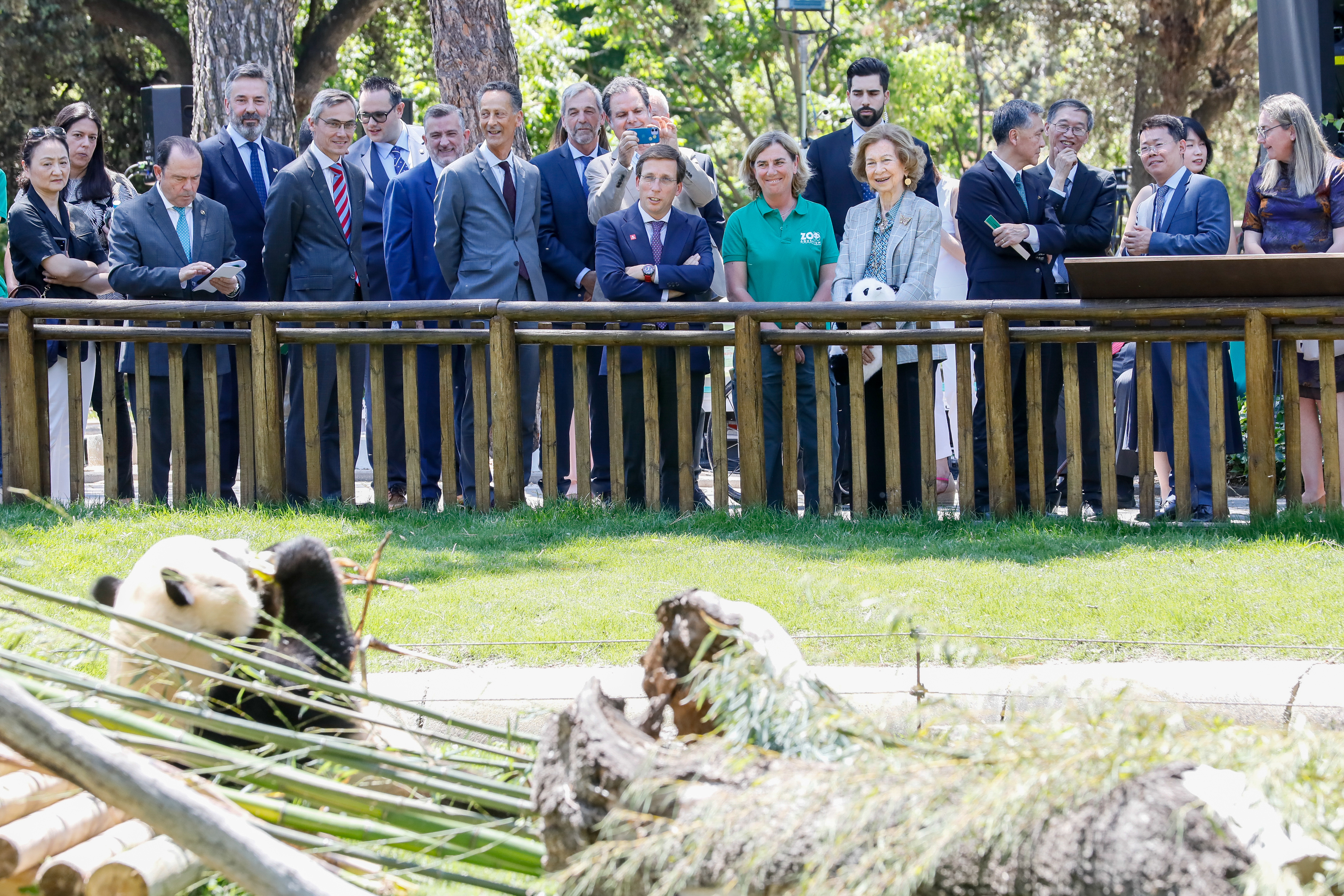 El alcalde de Madrid, José Luis Martínez-Almeida, ha participado en este acto de presentación oficial, presidido por la reina Sofía, en el que ha dado la bienvenida a estos “dos nuevos vecinos de la ciudad de Madrid” y ha celebrado el regreso de los pandas a la capital, cuya presencia “simboliza los años de amistad y de confianza entre dos naciones como España y China”. El alcalde ha destacado, asimismo, “la extraordinaria labor científica y de divulgación” realizada por el del zoo y Parques Reunidos, que ha posibilitado que en apenas “un mes de aclimatación a la ciudad, los pandas estén ya disfrutando de las bondades de Madrid”, lugar en el que “estarán como en casa”. Acompañado por el delegado de Urbanismo, Medio Ambiente y Movilidad, Borja Carabante, y el embajador de la República de China, Yao Jing, Almeida ha animado a madrileños y visitantes a conocer a los osos y “disfrutar de un privilegio del que gozan muy pocas ciudades del mundo”.