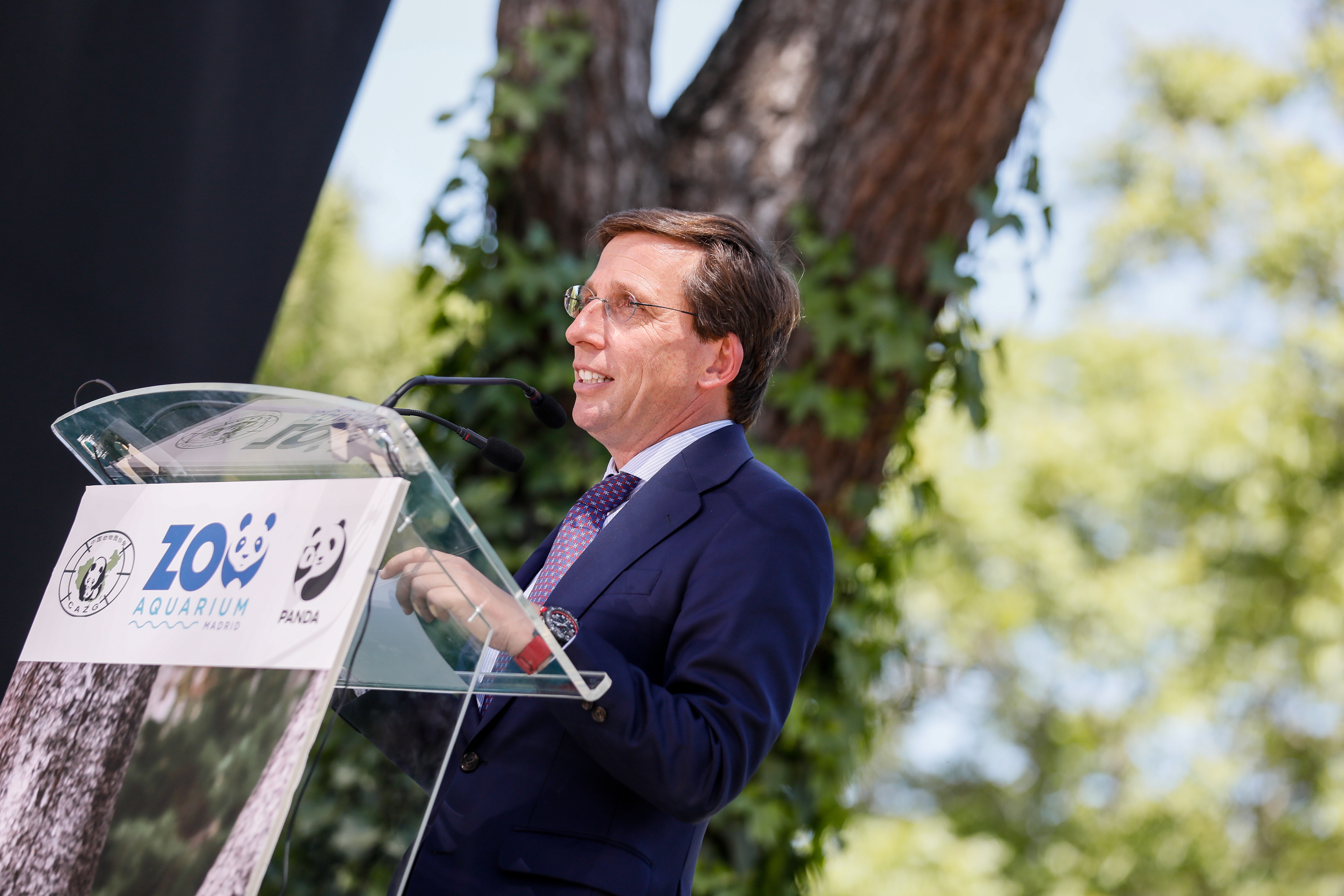 El primer contacto de la capital con los osos panda se remonta a 1978, cuando el Gobierno chino regaló a los reyes de España una pareja de esta especie, los padres del famoso Chu Lin, que fue acogida en el Zoo de Madrid. Almeida participó el pasado mes de febrero en el acto de despedida de la familia de pandas que, tras residir en las instalaciones del zoo desde 2007, regresaron a su ciudad de origen y a cuyas crías, nacidas en 2021, había apadrinado. /