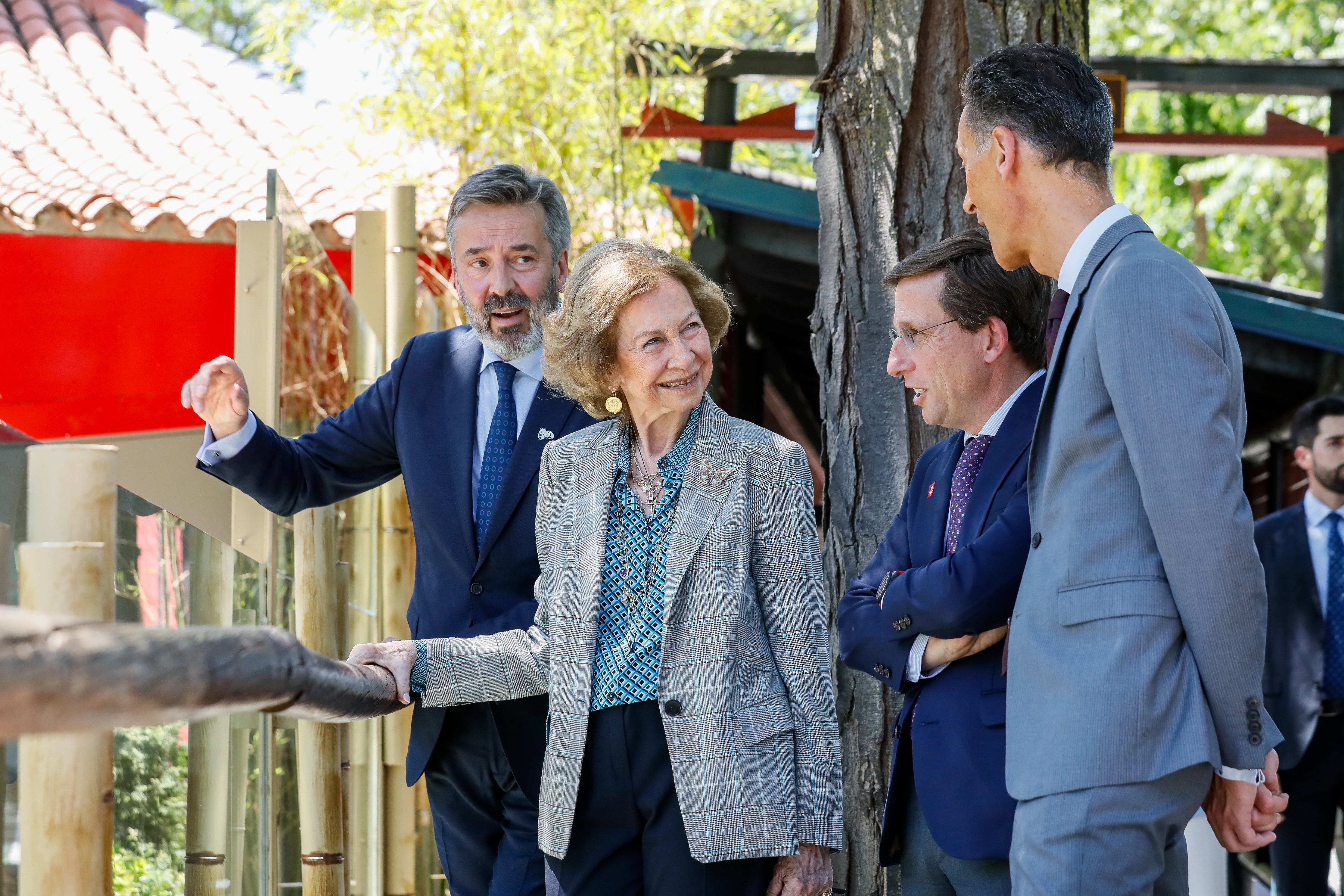 Almeida y la Reina Sofía en la presentación oficial de los dos pandas gigantes del Zoo de Madrid