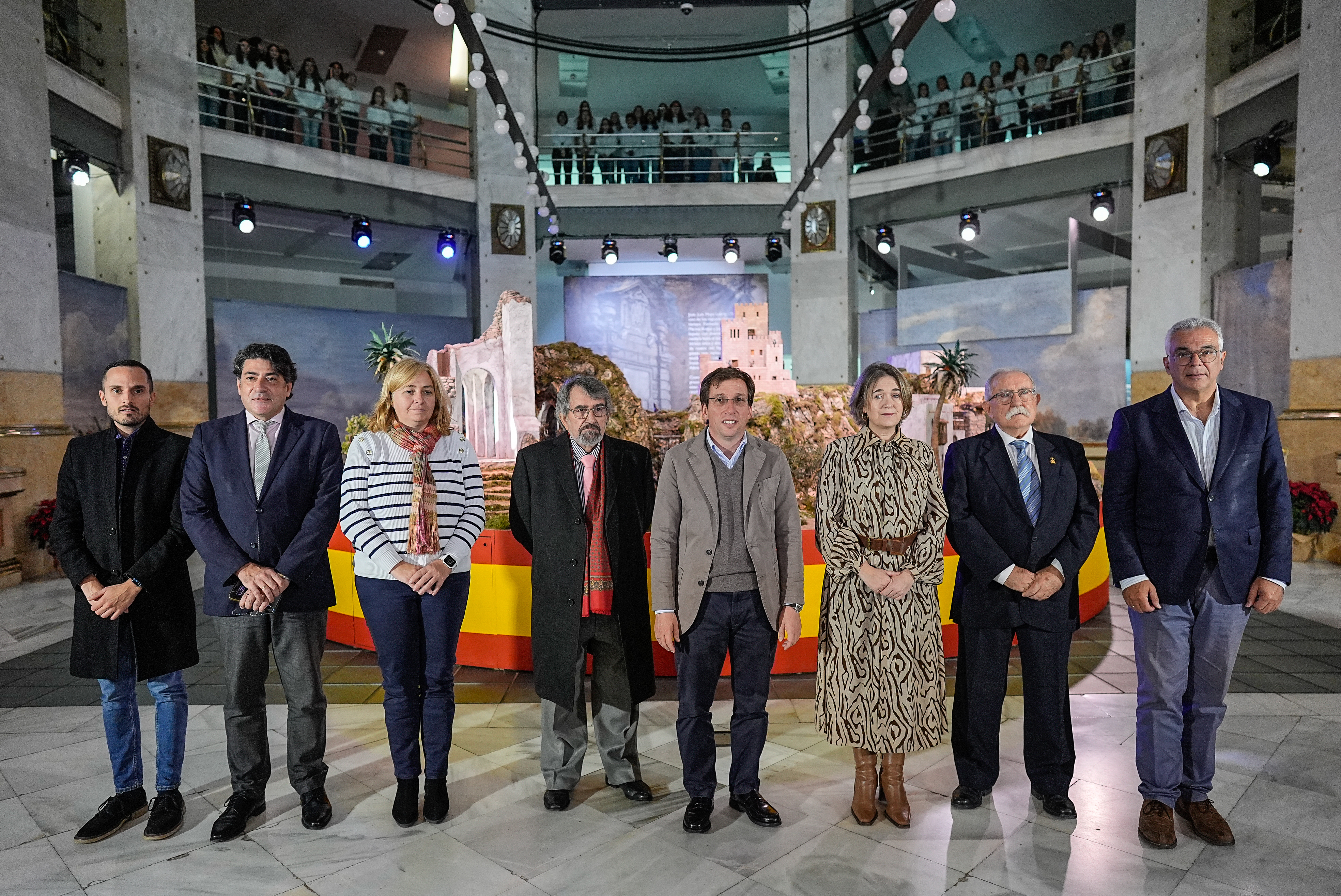 El alcalde de Madrid, José Luis Martínez-Almeida, acompañado de la vicealcaldesa y delegada de Seguridad y Emergencias Inma Sanz, y la delegada de Cultura, Turismo y Deporte, Marta Rivera de la Cruz, ha inaugurado hoy la temporada navideña con la apertura del tradicional belén municipal en el Patio de Operaciones de CentroCentro, en el Palacio de Cibeles. Un nacimiento que podrá visitarse hasta el 5 de enero y que está compuesto por 278 figuras únicas modeladas por el artista José Luis Mayo Lebrija. Diseñada por la Asociación de Belenistas de Madrid, la instalación, de estilo hebreo tradicional, marca el inicio de las celebraciones de las fiestas más entrañables del año.