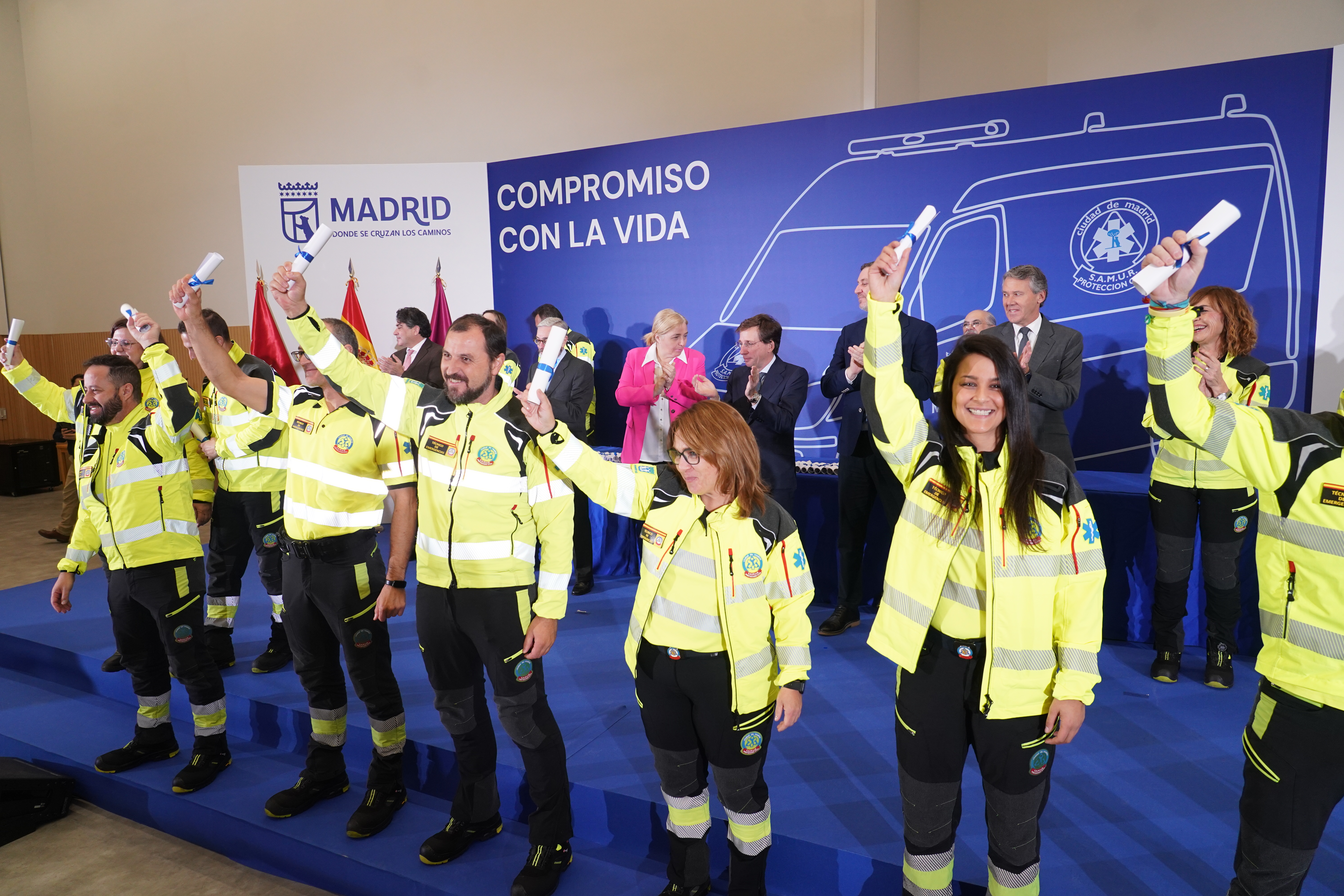 Almeida ha agradecido la vocación y preparación de los nuevos profesionales y el apoyo de sus familiares, ya que ingresar en este servicio exige “una altísima cualificación, pero también una altísima responsabilidad”, puesto que el trabajo de estos “ángeles de la guarda que visten de amarillo”, ha recordado el alcalde, consiste en “servir a los madrileños en las más difíciles circunstancias”.