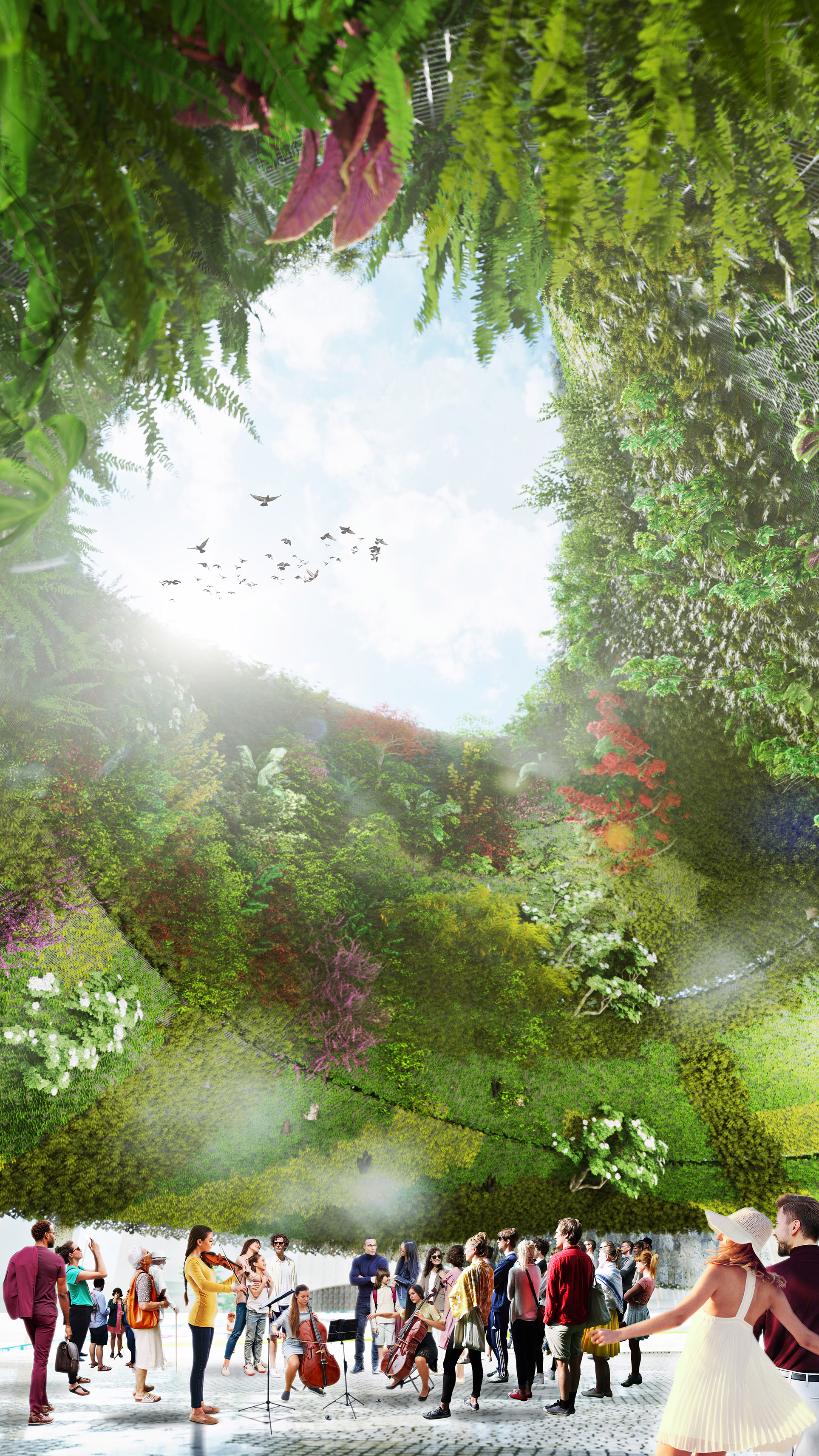 El parque, de 14,5 hectáreas de superficie, contará con un jardín vertical denominado jardín del Viento que tendrá forma de espiral y se levantará sobre las copas de los árboles, creando un espacio de frescor y microclima en su interior que lo convertirá en punto de encuentro.