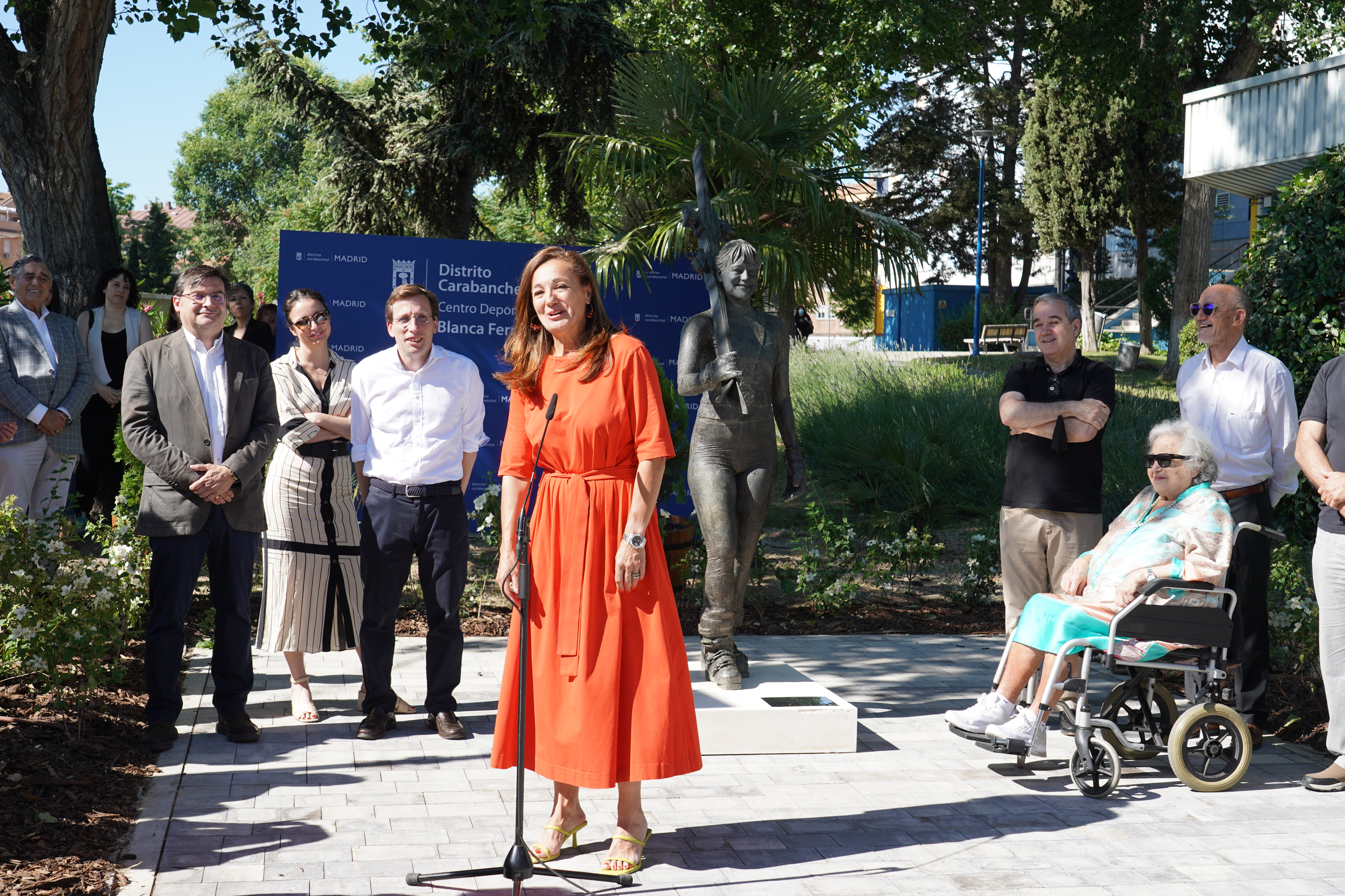 Almeida descubre la estatua en recuerdo a Blanca Fernández Ochoa en un acto de “justicia humana”