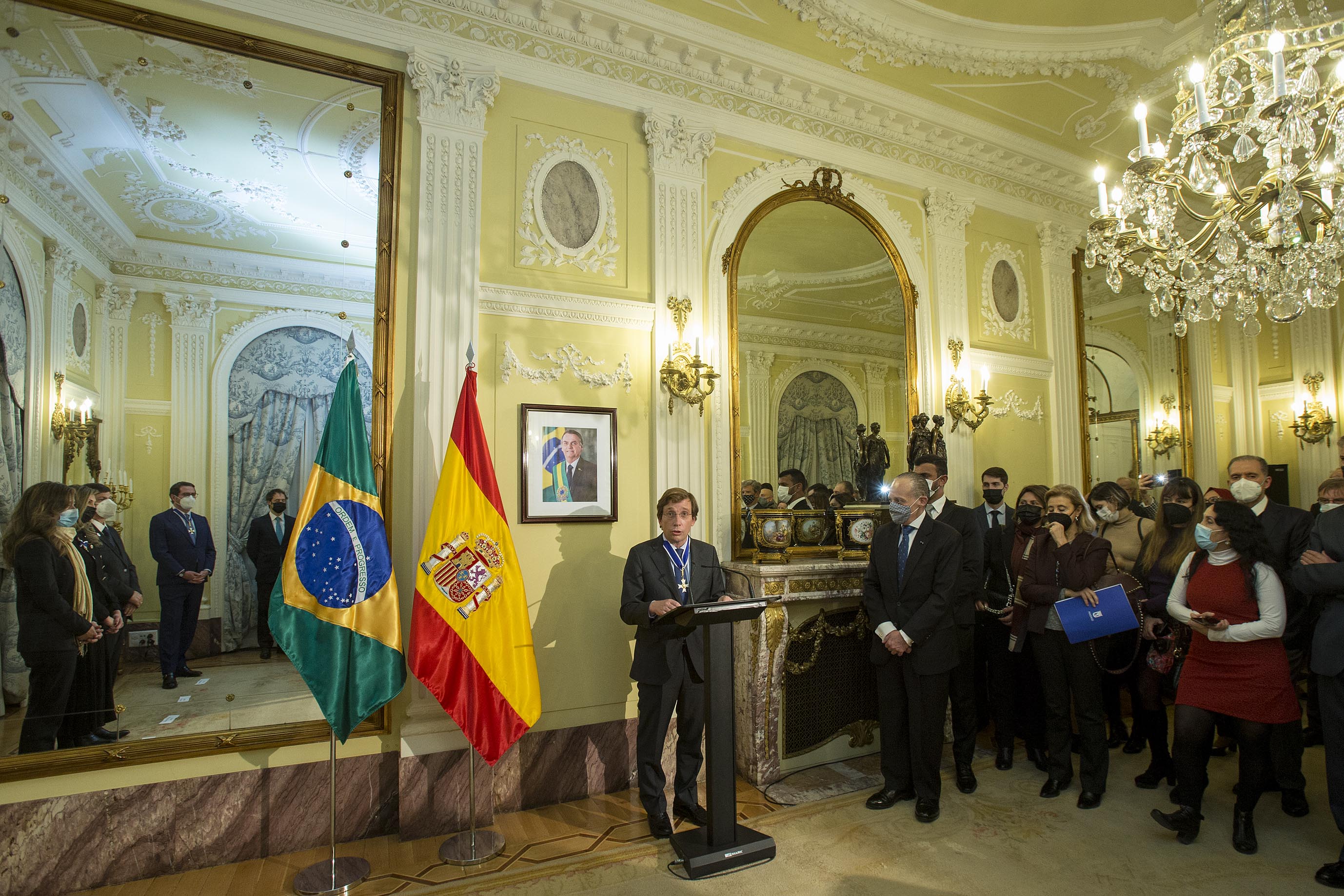 El alcalde de Madrid, José Luis Martínez-Almeida, ha recibido esta tarde la insignia de la Orden de Río Branco de manos del embajador de Brasil en España, Pompeu Andreucci Neto, en un acto celebrado en la Embajada de Brasil en Madrid en el que ha manifestado su compromiso de seguir intensificando las relaciones entre ambos países ya que “Madrid es la capital de Iberoamérica en Europa y conformamos una comunidad de afectos, historia, cultura, lazos económicos y sociales con un gran futuro por delante”.
